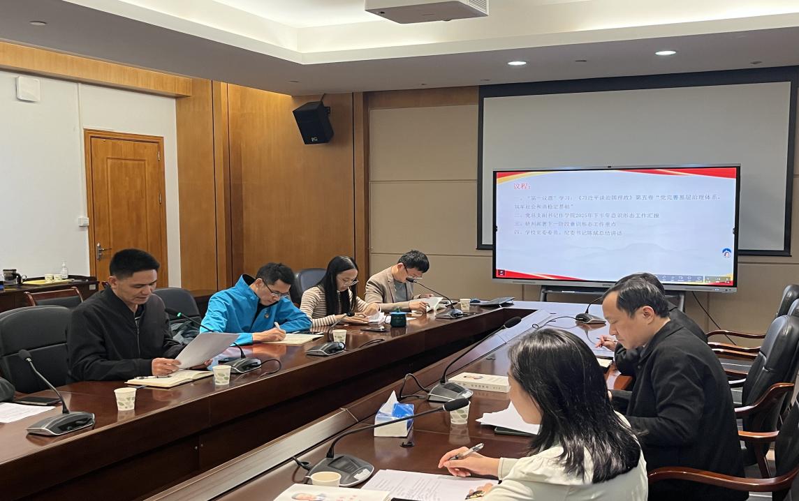 全体参会人员集中学习了《习近平谈治国理政》第五卷中关于党的自我革命、国家安全和思想政治等工作的重要论述摘编。通过学习,进一步深化了对新时代党的建设核心要义的理解,筑牢了思想根基,为精准推进党建、意识形态及全面从严治党工作,推动党建与育人实践、学院发展深度融合提供了坚实理论指引。