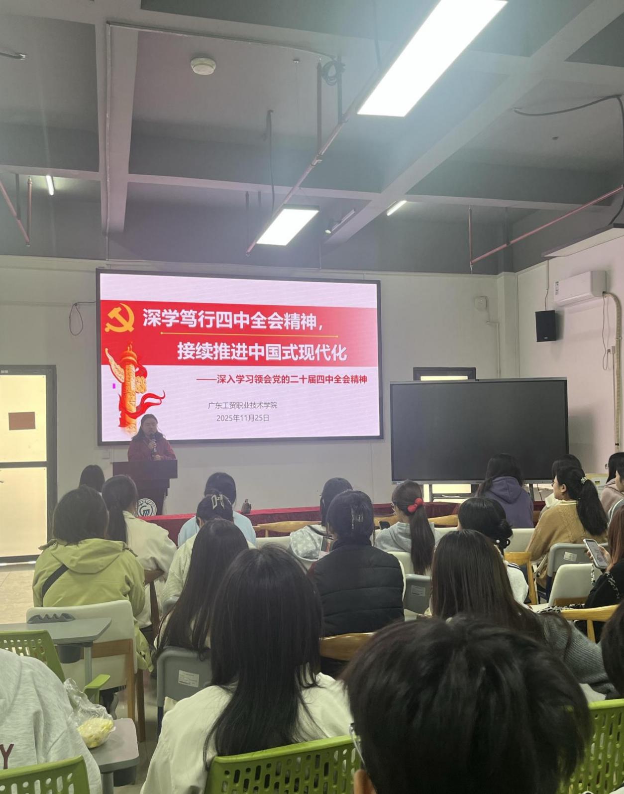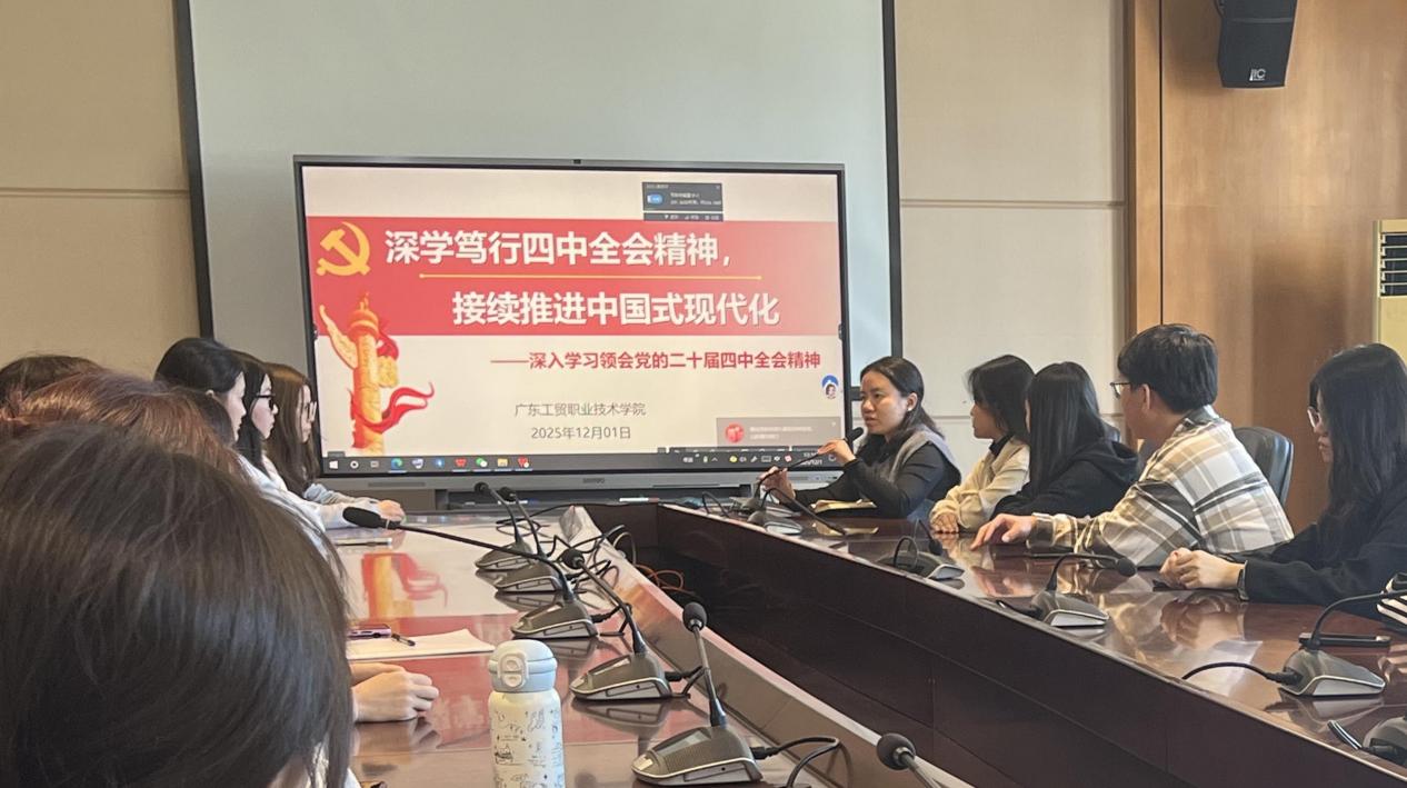 黄小奇围绕习近平总书记重要讲话和党的二十届四中全会精神,从“十五五”时期的关键地位、经济社会发展的指导方针与目标、战略任务与举措,以及坚持党的全面领导等方面展开解读。她强调,学习贯彻全会精神是全团当前和今后的重大政治任务,学院团委将通过主题团日、研讨交流等活动,引导青年深刻领悟“两个确立”的决定性意义,以实际行动书写青春担当。