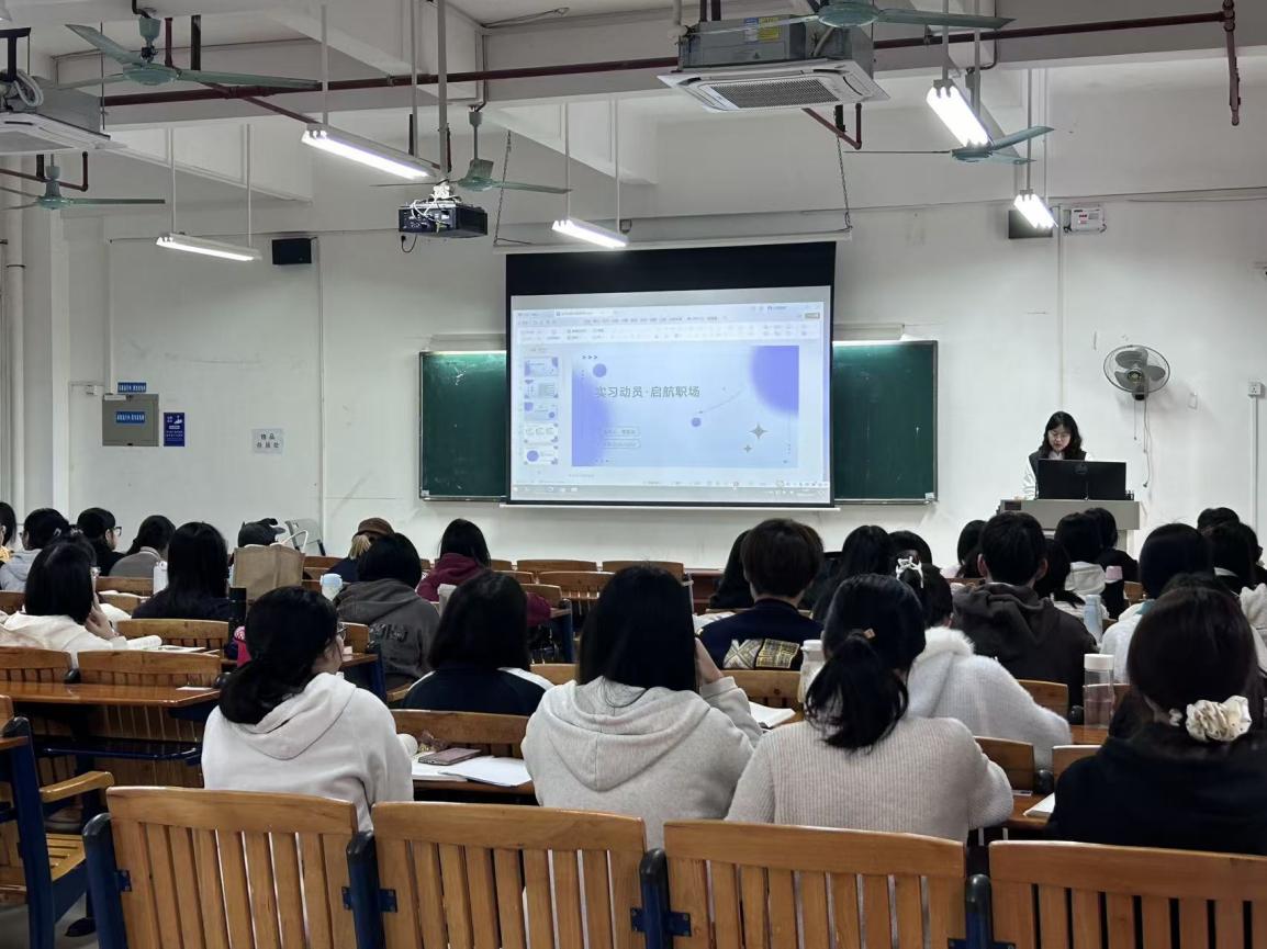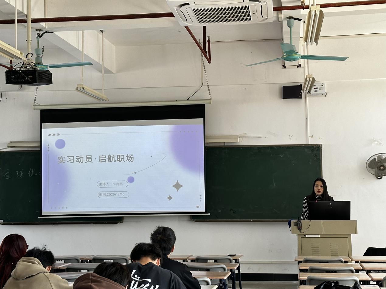 商务管理专业于1216日在明德楼2-602教室,面向2026届毕业生举行实习动员大会。会议由李海燕老师主持,23级商管1班、2班全体同学参加。会议从实习整体概况、任务与材料清单、安全注意事项、校企双导师机制、成绩评定与毕业答辩等五个维度全面解析实习安排,帮助学生明确各阶段任务与要求。