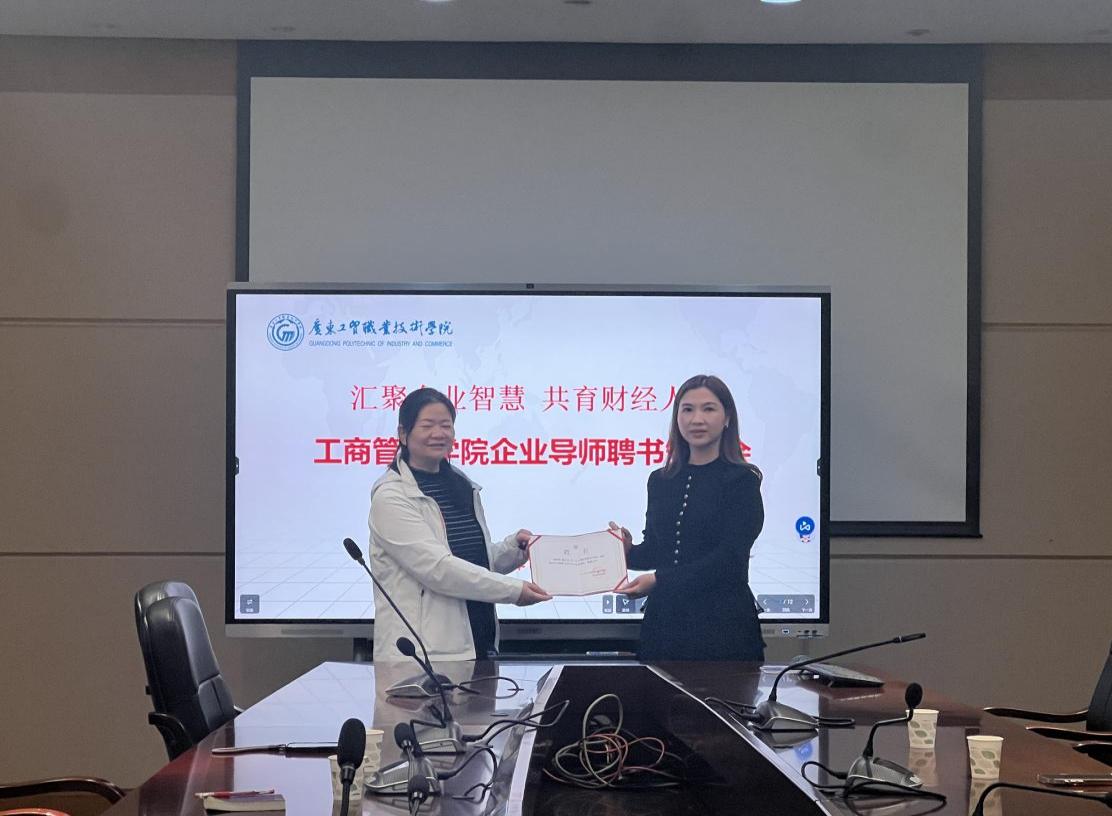 活动伊始,胡建平详细介绍了学院的发展历程、专业设置及人才培养特色,强调校企合作是提升人才培养质量的关键路径。杨慧介绍了大数据与会计专业的办学理念、实训教学开展现状和学生实习就业情况。潘小平结合自身深耕会计行业多年的实战经验,分享了数字化背景下会计行业的发展趋势,校企双方聚焦“实训课程体系共建、双师型教师队伍培养、学生实习就业通道搭建”等问题进行深度研讨。研讨会上胡建平代表工商管理学院向潘小平总经理颁发企业导师聘书,聘请其长期为大数据与会计专业实训教学、课程设计、职业规划等工作提供专业指导。
