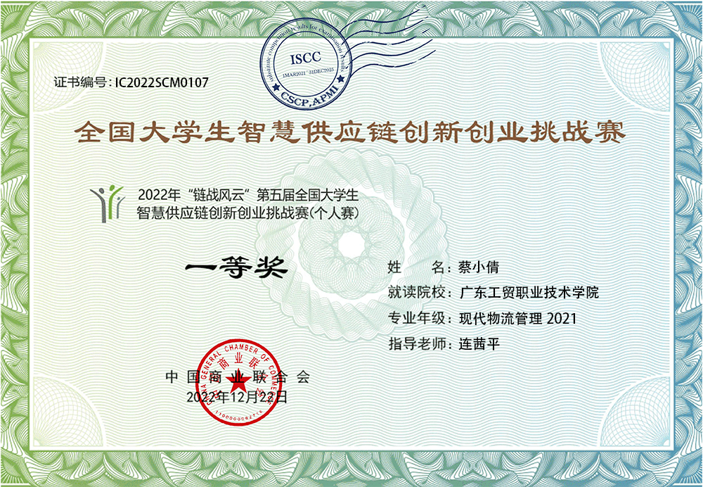 全国大学生智慧供应链创新创业挑战赛 一等奖