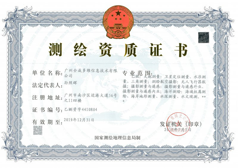 广州全成多维信息技术有限公司是全成地信集团全资子公司,成立于2008年,注册资金1000万元,是南沙新区唯一一家综合性的甲级测绘高新技术企业,业务范围涵盖:大地测量;工程测量;不动产测绘;地理信息系统工程;测绘航空摄影;摄影测量与遥感;海洋测绘等。