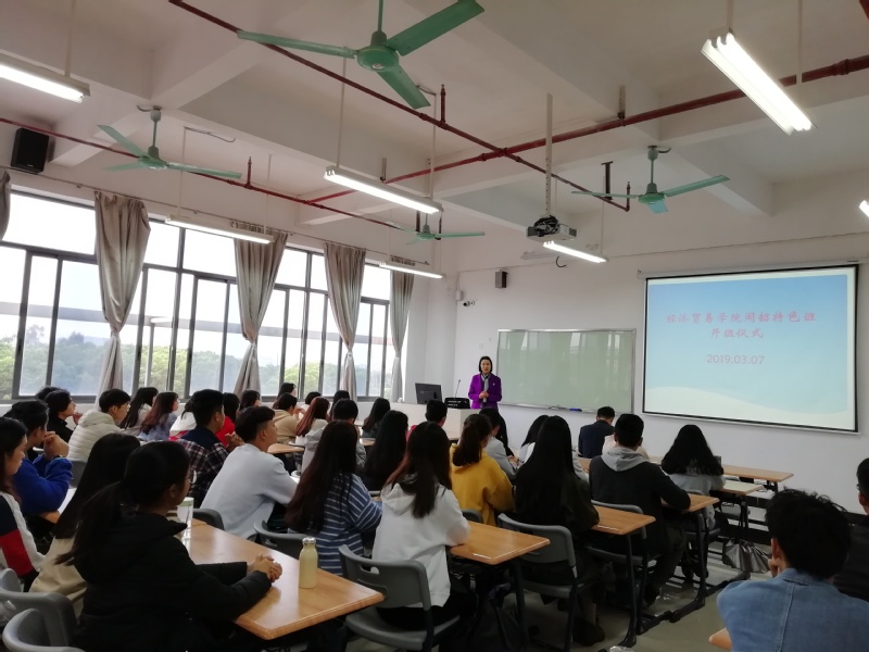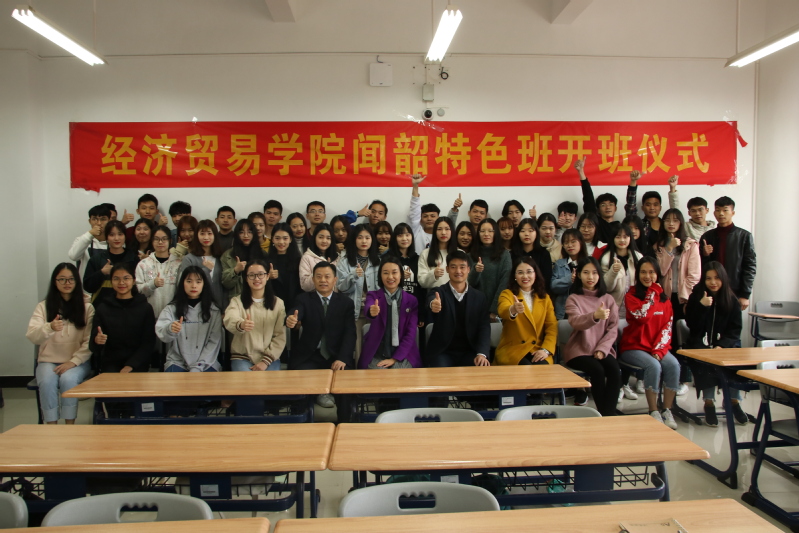 为了进一步打造经贸学院品牌,经贸学院领导班子商议,成立“闻韶”特色班,为培养德智体美劳全方面发展的学生,让学生们通过学习,提升良好的气质与修养,塑造经贸学子卓尔不凡的美好形象。在上学期,经贸学院开始组织学生报名,并逐个对学生进行了面试筛选,学院领导们一起商议课程的安排,拟定了任课老师。2019年3月7日下午两点,经贸学院“闻韶”特色班开班仪式正式在明德楼1-510拉开了序幕,出席会议的有经贸学院党总支龚云副书记、方洁副院长、李艇、邓彩云老师以及“闻韶”班的50名同学。