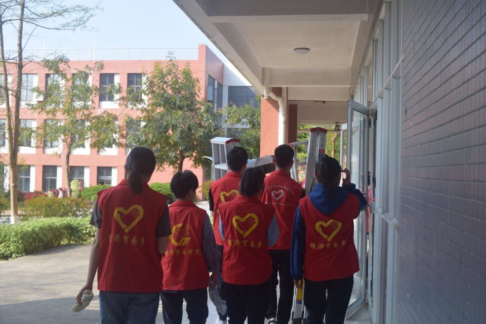3月12日下午14:00,经贸青协带队干事带领着招募的志愿者们前往经贸学院女生宿舍的子勤书院⑤号楼和子新书院①号楼。志愿者们身穿红色马甲,男生手扛着梯子,女生拿着毛巾等清洁工具,由带队干事整齐的带往女生宿舍,在宿舍楼下把相关证明出示给宿管阿姨,经过同意后,按照分组前往各个小组负责的宿舍。为避免打扰同学们休息,志愿者们放轻脚步,轻声敲门。从将风扇外壳拆下来清洗,擦拭风扇叶,到安装风扇外壳,志愿者们齐心协力,一步步将工作做好。