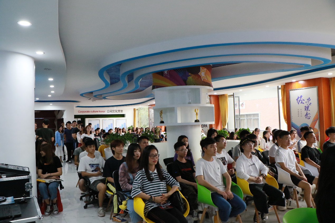 在公司大会议室,师生们观看了企业宣传视频,对企业有了一定的认知。紧接着,在企业的师兄师姐们给大家表演了精心准备的手语舞《感恩的心》和《堂堂正正一辈子》。