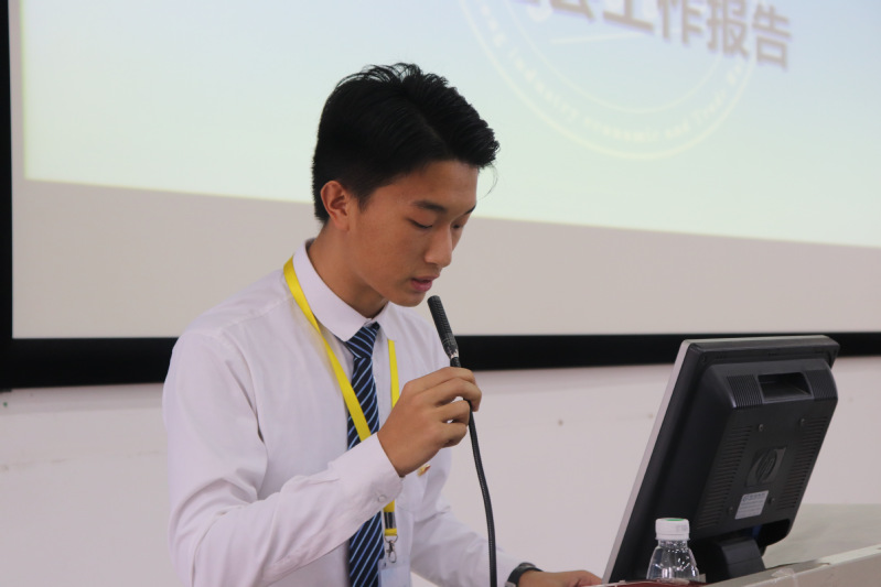 第一项议程由经济贸易学院团委书记黄小奇做团委工作报告。经济贸易学院主席吴锐亮对上一年度的工作进行了总结报告,并宣读和通过会议选举办法。