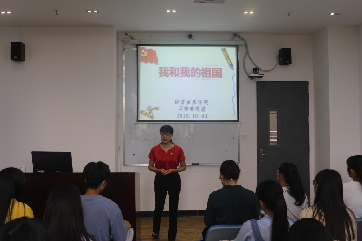 根据《广东省教育厅关于做好2019年秋季学期高校党委书记、校长和院(系)党组织书记、院长(系主任)以及中小学党组织书记、校长上第一堂思想政治理论课工作的通知》要求,经济贸易学院开展了思想政治理论课院长第一课活动。2019年10月9日下午,在白云校区明德楼,经济贸易学院院长邱秀芳以“我和我的祖国”为主题,给2019级团干上了一次别开生面的课程。