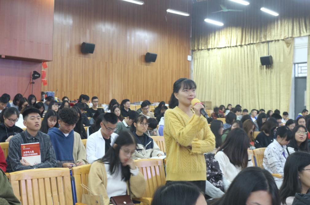 课堂上讲述了实现中华民族伟大复兴的中国梦,需要一代又一代青年的努力。课堂的开场上,入党誓词为主体内容,由学员代表为大家朗诵,学员代表铿锵有力的声音向大家表达了自己坚定的入党信念。紧接着老师给同学们观看国庆阅兵,分析了国家最近的政治形势,各学院的入党积极分子代表讲述了自己的入党动机。最后李元给大家讲述了中国取得的新辉煌,告诫大家中国的飞跃进步离不开党和人民,党要始终与人民在一起。