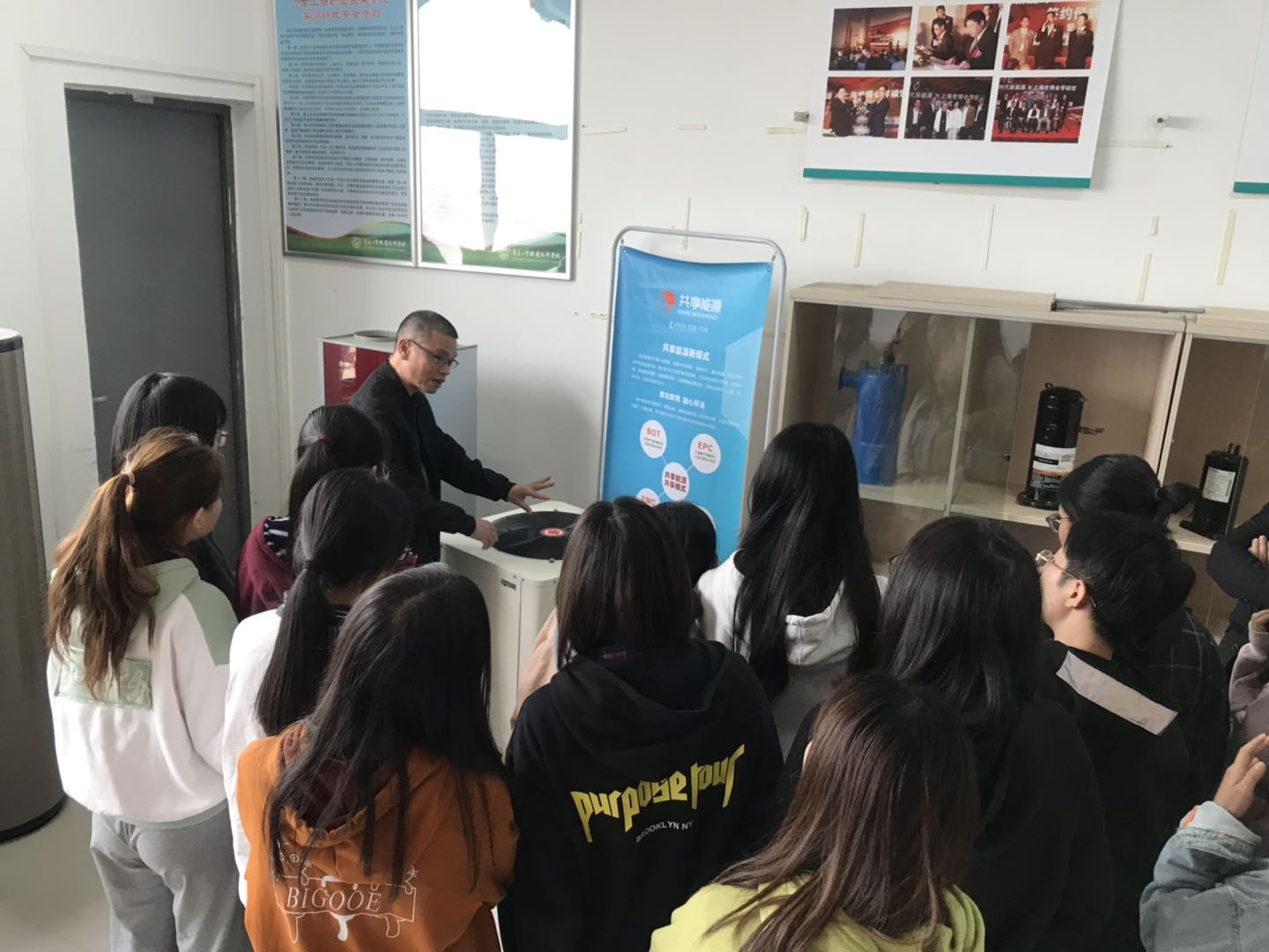 东莞新能源科技有限公司谢总、易总、赵总等领导亲自为我校学生授课,并围绕全球新能源产品的发展状况及市场需求,全球各个国家对空气热能热泵产品的政策支持。跨境电商业务员如何高效率处理客户提出的专业知识及为客户设计项目解决方案,商用空气能产品的应用及案例业务流程细解,阿里平台操作、社交软件使用。客户分析维度、邮件书写思路、货运及付款等展开。并带领学生参观校企合作工作室的产品,将理论与实践进行有机结合,大大提高了学生的学习兴趣。
