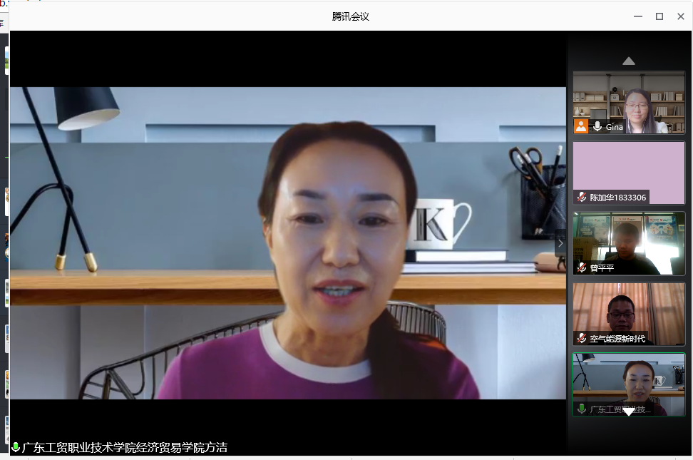 在学院强力推进“双高”计划建设,推动产教学融合发展的契机下,为更加全面地提升人才培养水平,培养更多跨境电商行业实用性人才,加强学院与企业之间的深层次合作,由经济贸易学院国贸专业组织的“共享能源”跨境电商精英班宣讲会于2020年6月14日上午在线上举行。参加宣讲会的有:100%精准出码规律资料网站经贸学院副院长方洁、100%精准出码规律资料网站经贸学院商贸系主任蒋晶、100%精准出码规律资料网站国贸专业专任教师及100%精准出码规律资料网站经贸学院18级、19级国贸专业同学;企业方出席嘉宾包括东莞市共享能源科技有限公司总经理谢坤、东莞市共享能源跨境电商专员曾平平、李江萍。其中,曾平平、李江萍为17级国贸专业毕业生,现就任于东莞市共享能源科技有限公司。此次宣讲会由100%精准出码规律资料网站经贸学院商贸系蒋晶主任主持。