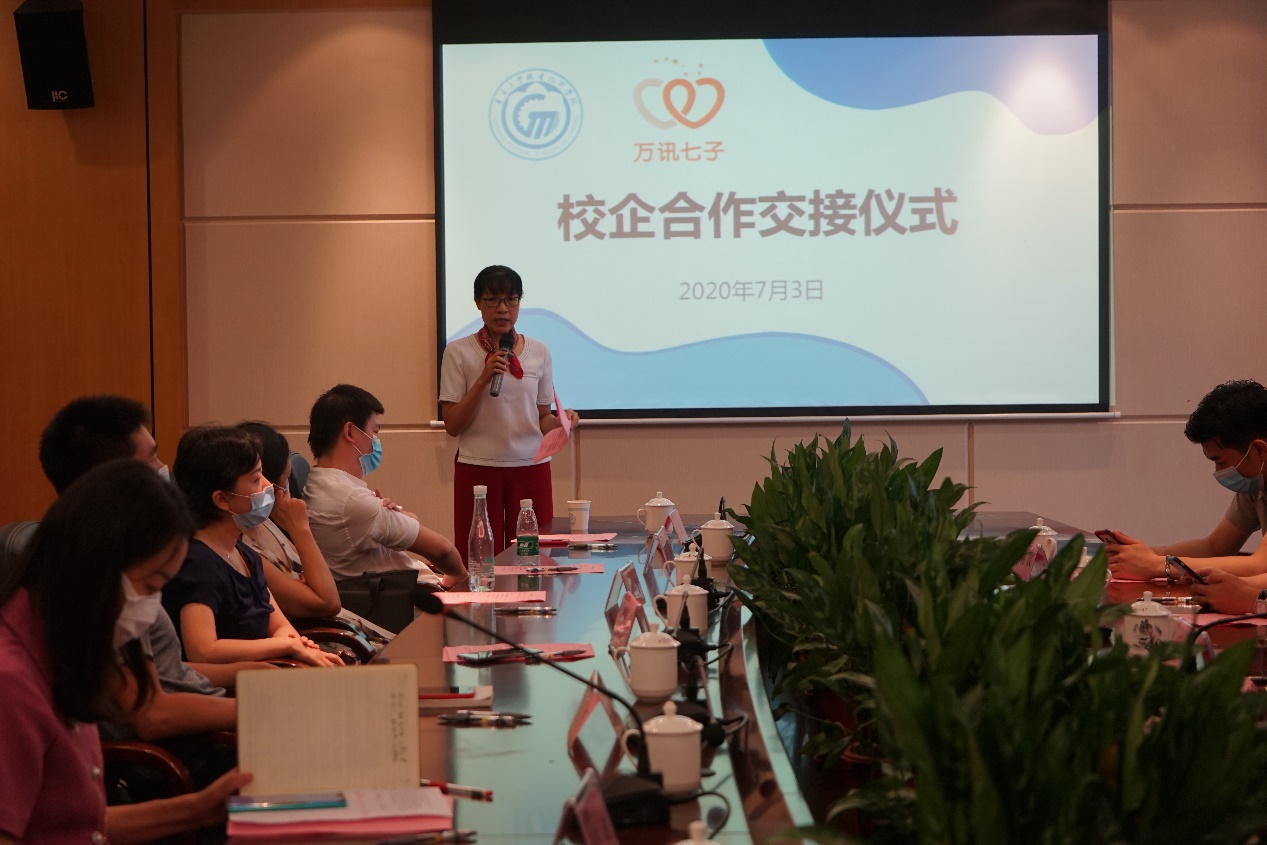 2020年7月3日,工贸·万讯市场营销第一届学徒制班交接仪式在我校白云校区中心会议室拉开帷幕。经济贸易学院邱秀芳教授,龚云副书记、方洁副院长,市场营销专业带头人彭娟,市场营销专业系主任严琳、万讯学徒制负责人廖文芳,市场营销专业老师冯玥怡,万讯学徒制班主任程成及广东万讯网农业股份有限公司校企部总监陈创,校企部学徒管理组组长吴绮莉,校企部运营主管喻习,电商实训中心运营总监曾令伟,电商实训中心运营总监梁念欣,电商实训中心运营组长欧钊汶出席仪式,本次活动由龚云副书记主持。学校导师、企业嘉宾济济一堂,迎接31位学徒成为广东万讯网农业股份有限公司的“准员工”。