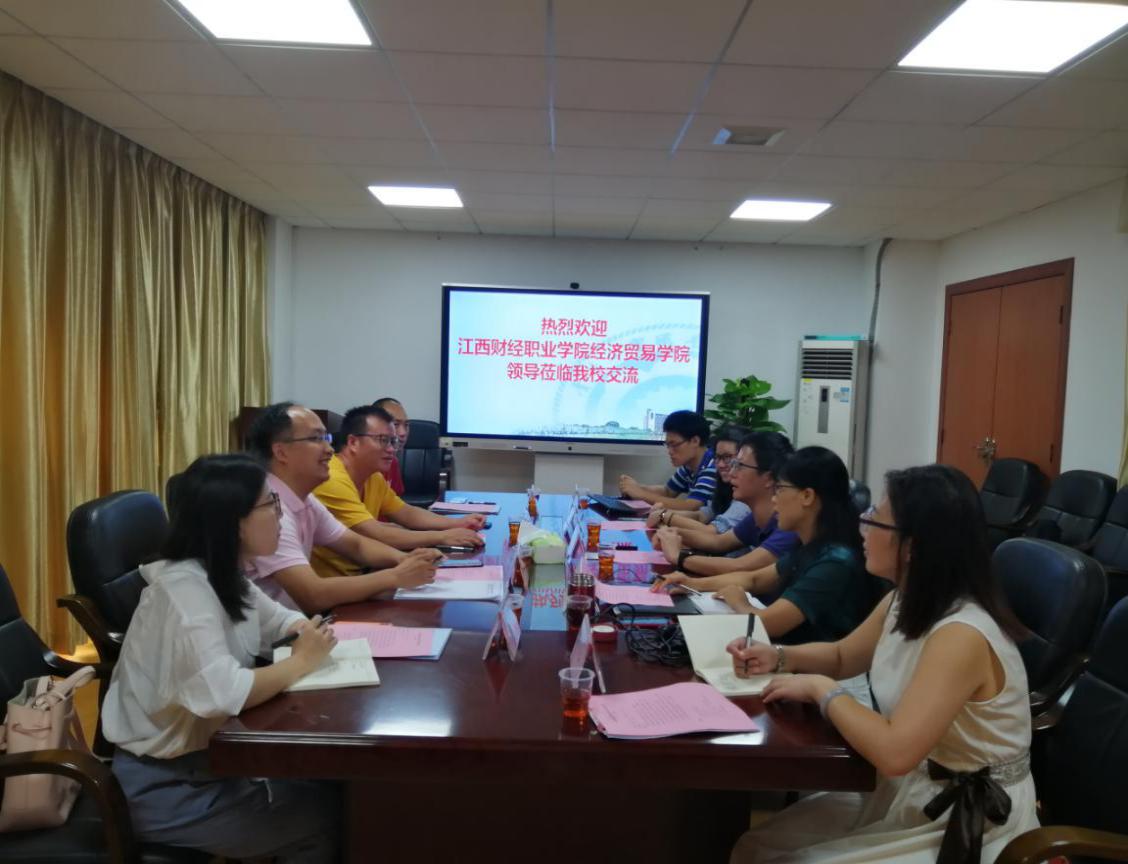江西财经职业学院经济贸易学院院长肖细根介绍了此次考察交流的目的,并感谢我校的热情接待。随后双方围绕师资队伍建设、校企合作办学、师生交流合作等方面展开深入交流与探讨,对我校发展取得的成绩表示赞赏,双方表示今后将进一步加强交流与合作,相互学习借鉴,共享优质办学资料,共谋职业教育事业发展新篇章。