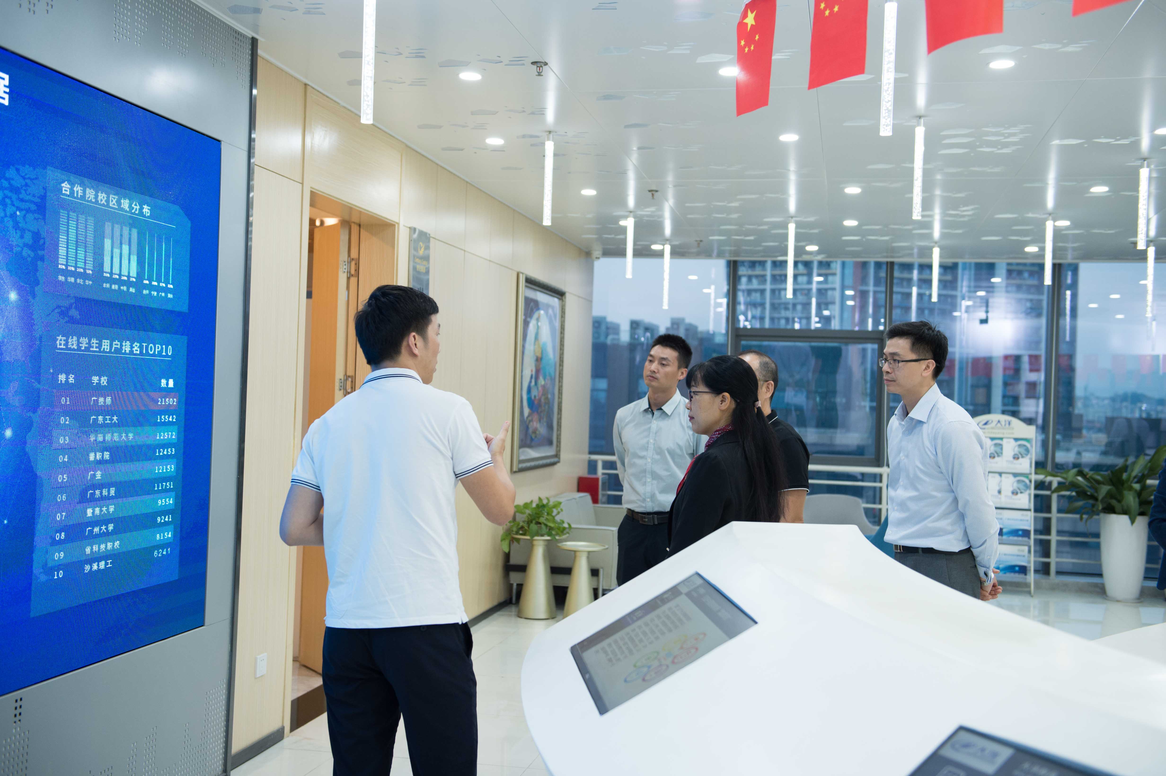 10月23日,经济贸易学院党总支书记李繁、院长邱秀芳、党总支副书记龚云、副院长蒋晶、办公室主任邓彩云、营销系主任严琳、国际贸易专业带头人李政敏、电子商务专业带头人方文超等一行10人,赴广州大洋教育科技股份有限公司参观考察。