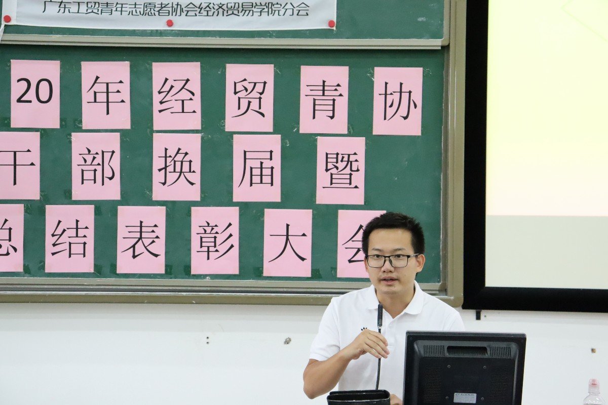 经贸青协成功举办的每一项活动都离不开老师的悉心教导。指导老师章少重对新任干部发表寄语,提出要求。这一年来青协举办的活动取得一定的成绩,并鼓励新任干部全力以赴,积极奉献,续写青年志愿服务的辉煌篇章。