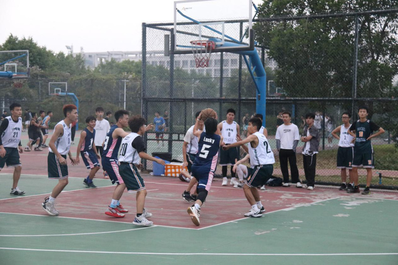 各班参赛队员们很快就进入了比赛状态。以熟练的篮球技巧充分发扬了顽强拼搏的精神,在比赛中你争我抢,同时与队友默契配合,用心组织进攻。一个队伍里总有能力强的和力有未逮的,但赛场上每一个队员都以饱满的热情参与。在赛场外,各班观赛人员也毫不松懈,他们奋力为自己班的队员们呐喊助威,热烈的欢呼声此起彼伏,感染着场上的每一个人。