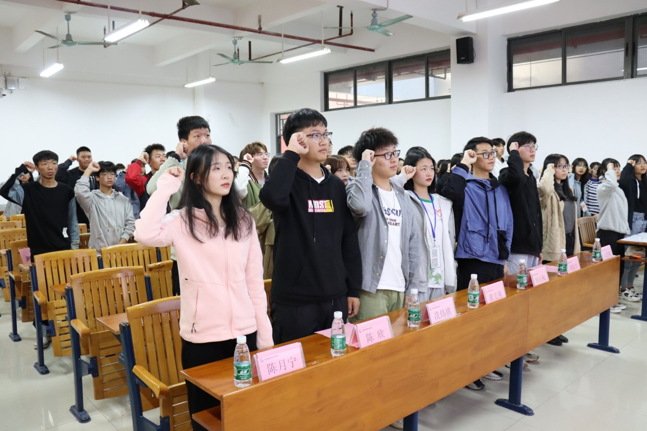 随后,参与大会的全体成员在主持人黄海燕的领誓下全体起立,右手握拳进行宣誓。51名新干事许下庄严的誓言:“我宣誓,我愿意成为一名光荣的青年志愿者”,展现出新干事对青协以及志愿者的真心与诚心。