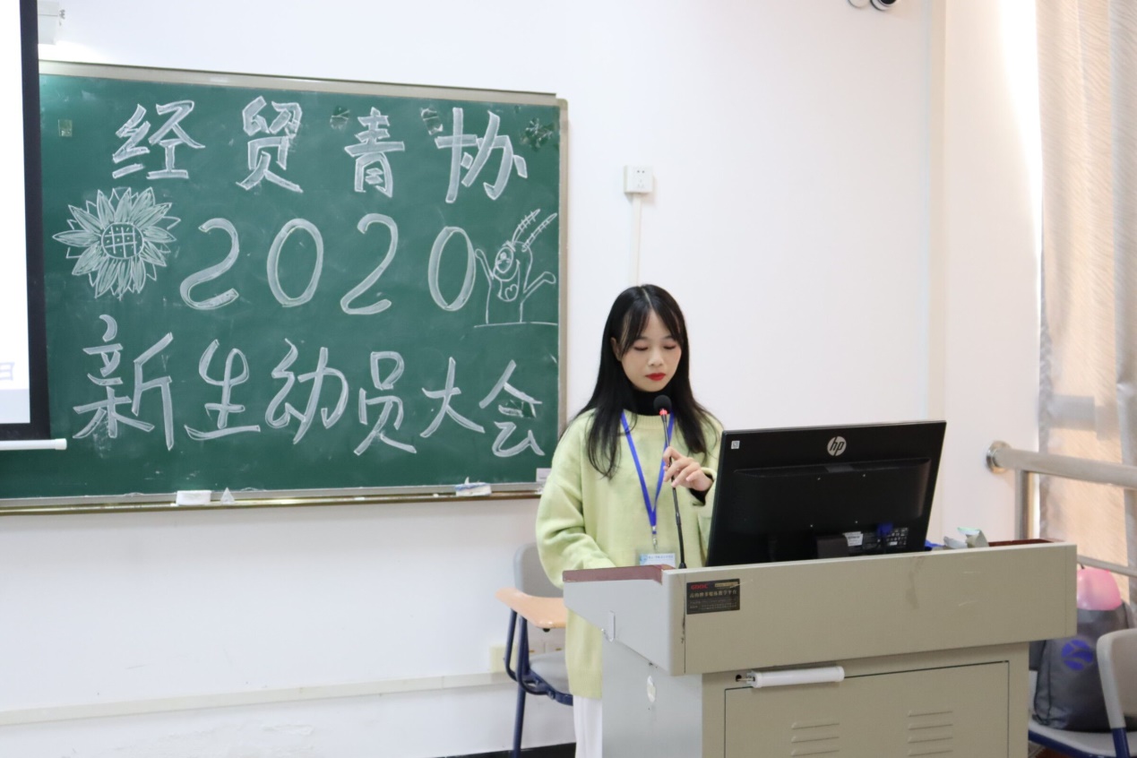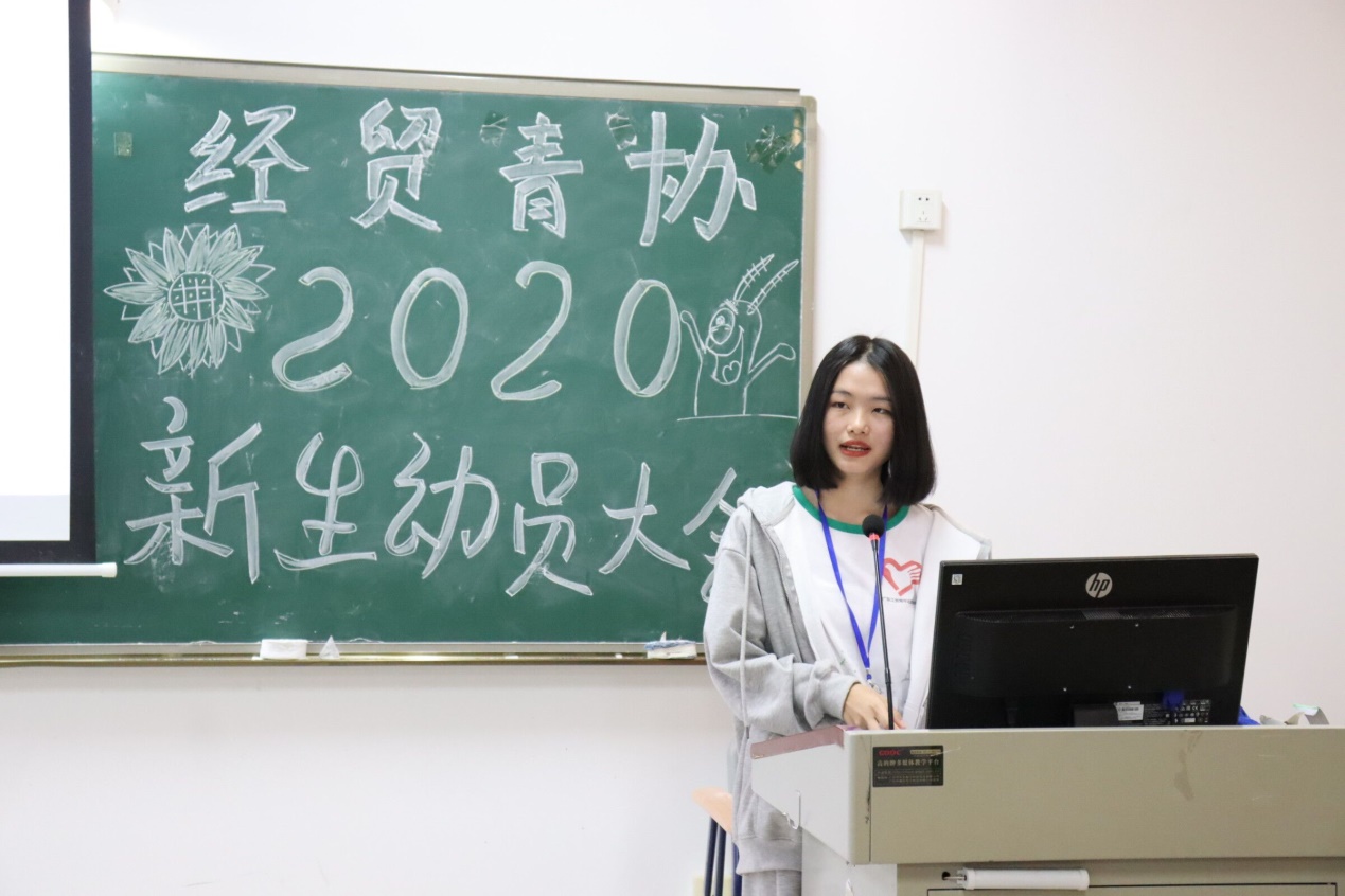 大会上,秘书长利海娥简明扼要介绍经贸青协的各种志愿活动:探访太平敬老院、高埔小学支教、书香校园行等。其中广州市老人院文娱表演、母亲节爱邮、雷锋月一系列品牌活动更让人印象深刻。随后各部门部长上台发言,对新干事提出要求并寄予厚望。20级新干事代表洪楚格发言,展现出新干事们对往后在青协道路上的憧憬与向往。