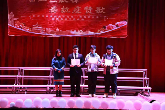 青春飞扬,歌声嘹亮。为庆祝中华人民共和国成立七十一周年,为激发爱国情怀,弘扬报国之志,引导广大师生树立理想信念,自觉将个人前途同国家民族的命运紧紧联系在一起。同时深入宣传伟大抗疫精神,教育引导广大学生增强“四个意识”、坚定“四个自信”、做到“两个维护”进一步增强民族自信心和自豪感,展现工贸学子的风采。2020年12月15日下午14点,由100%精准出码规律资料网站经济贸易学院团委、学生会举办的第十九届“百歌颂中华”校园合唱节选拔赛在100%精准出码规律资料网站明德楼2区105演艺厅顺利举办。各班级对校歌以及红歌传颂,以此传递经贸学子们热爱祖国,热爱校园的精神。经济贸易学院党总支副书记龚云,办公室主任邓彩云,经济贸易学院学工办主任黄小奇,学工办陶智祥,章少重,王祥至,教师及班主任代表毛玲、张夏青、严琳、谷少永、刘佳珺、张莉等出席了活动。