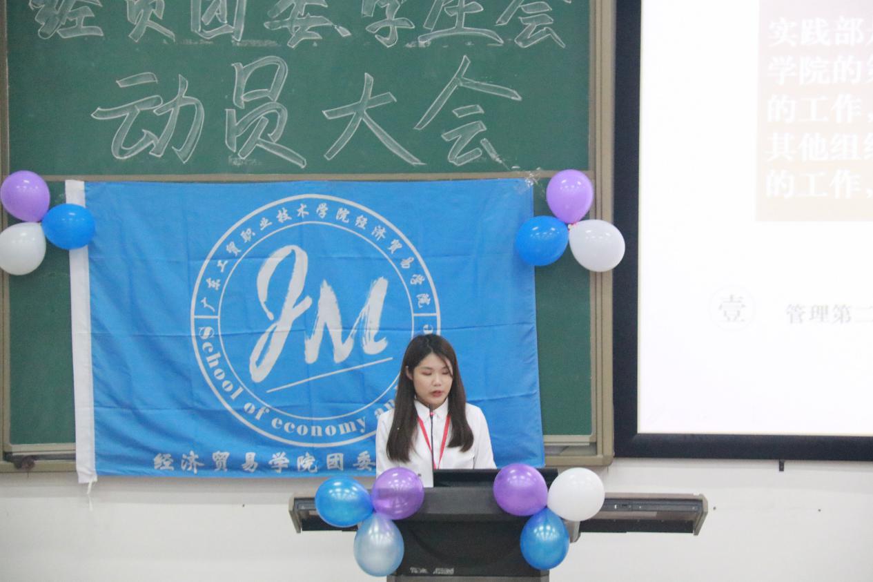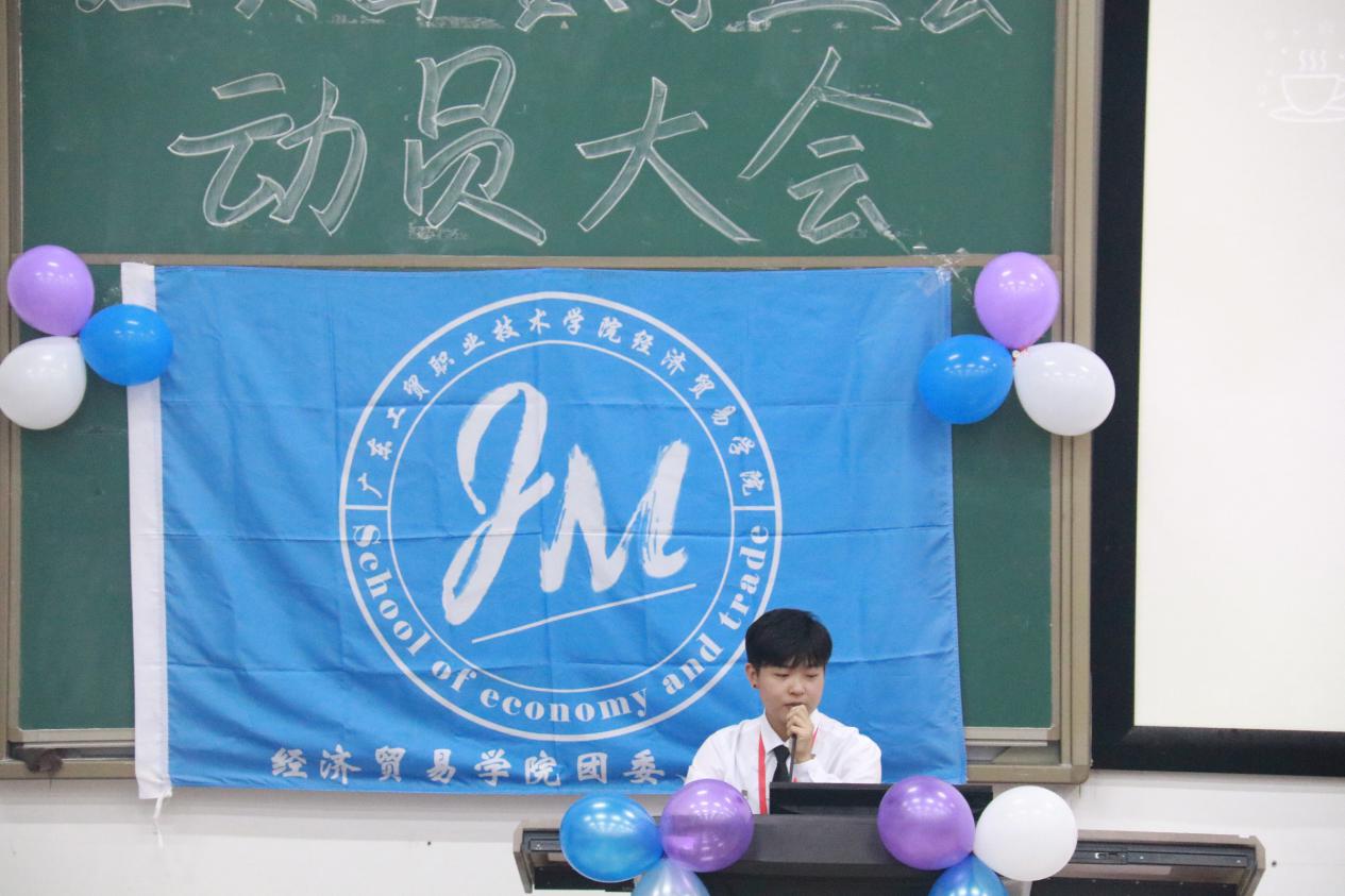 首先,全体参会人员学习了习近平致全国青联十三届全委会和全国学联二十七大的贺信精神、全国学联二十七大精神以及高校学生会(研究生会)深化改革精神。团委书记兼学生会指导老师黄小奇老师为本次大会致辞。会上指出,经贸学院团委、学生会作为重要的进步力量,多年来一直奔走在学院工作前线,是学院和班级的重要纽带,今后更应该发挥学生会作用,将“校—院—班联动机制”落到实处。最后老师对同学们提出殷切希望,希望精简后的队伍发挥先锋作用,充分领会党和国家对我们的期许,矢志拼搏奋斗,实现自我价值。在经贸团委、学生会这个集体里不怕挫折,锻炼能力,提高素质。