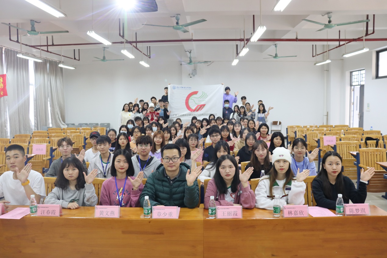 14:00,大会正式开始,由主持人李雨婷作开场并介绍莅临本次大会的嘉宾,分别有青协指导老师章少重、副会长黄文燕、学院党群服务中心主席林嘉欣、学院团委、学生会主席陈梦琪以及各院青协代表等。