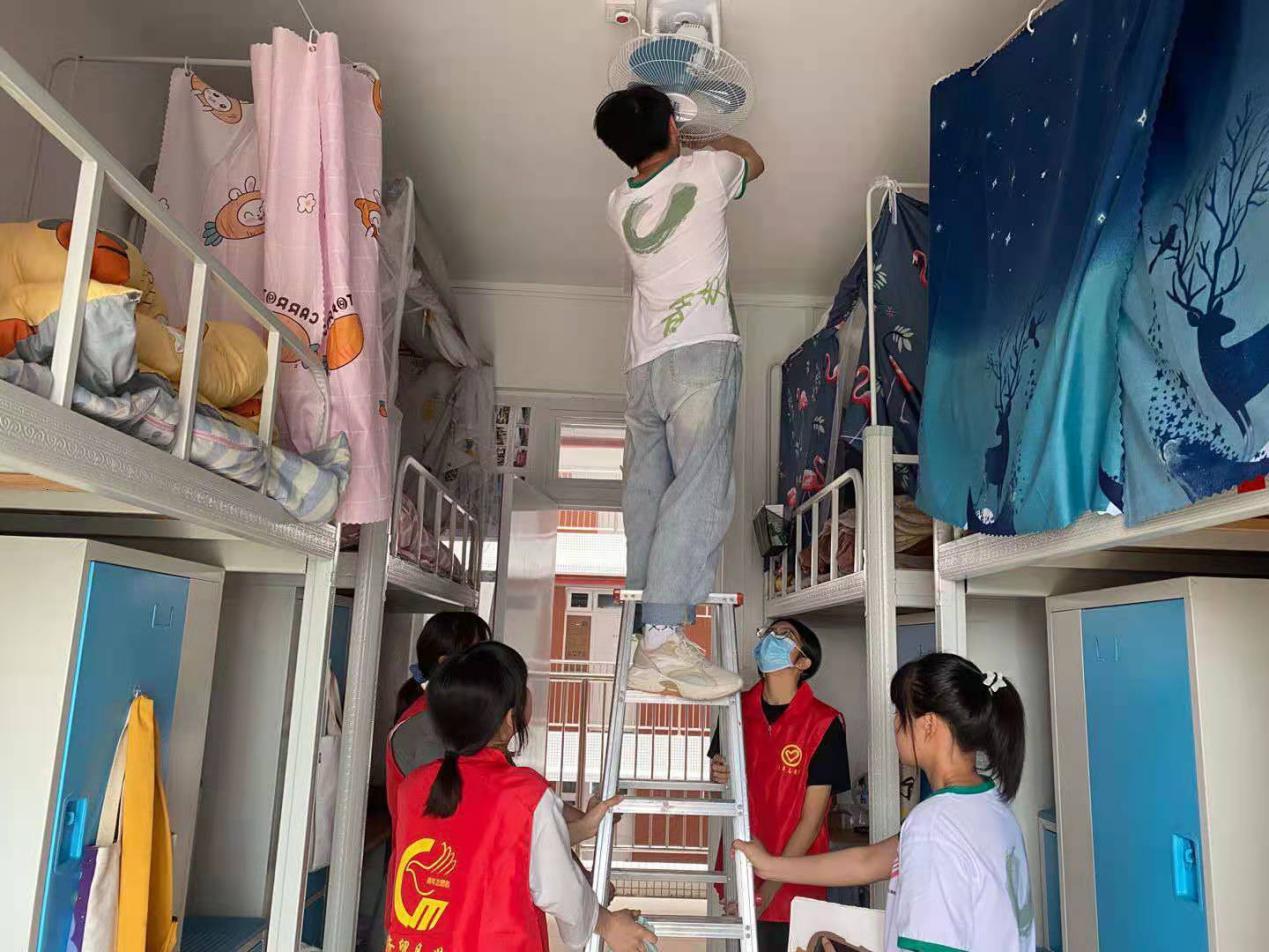 到达需要清洗风扇的宿舍时,为避免打扰到其他同学的休息,志愿者们放轻脚步,轻声细语。随后青协带队干事率先敲门说明来意,得到允许后带领志愿者进入宿舍清洗风扇,志愿者们各司其职、互帮互助,从男生负责拆下风扇外壳与擦拭风扇叶到女生清洗风扇外壳再到安装好风扇外壳,一步步工作都井然有序。本次活动中志愿者们忙碌的身影不仅使风扇焕然一新为同学们送来了三月春风的凉意,同时还让志愿精神撒向了同学之间,“团结、互助“的精神贯穿于整个活动。