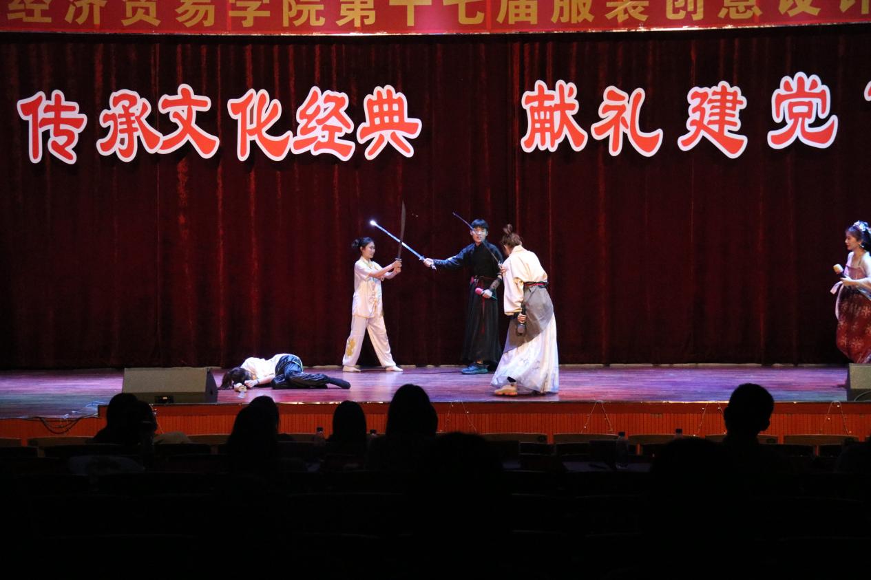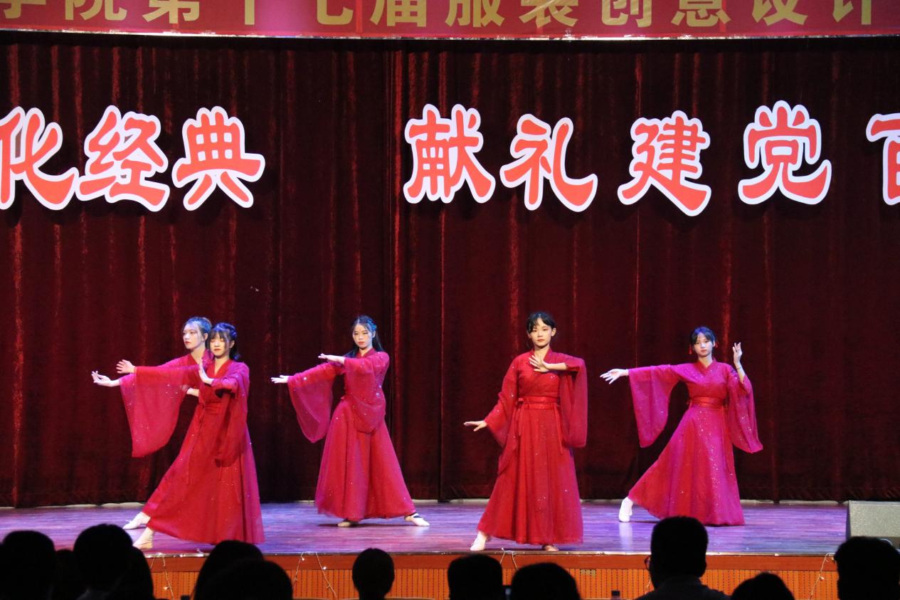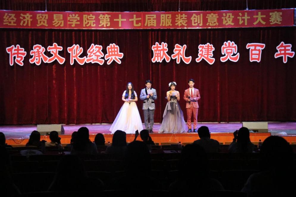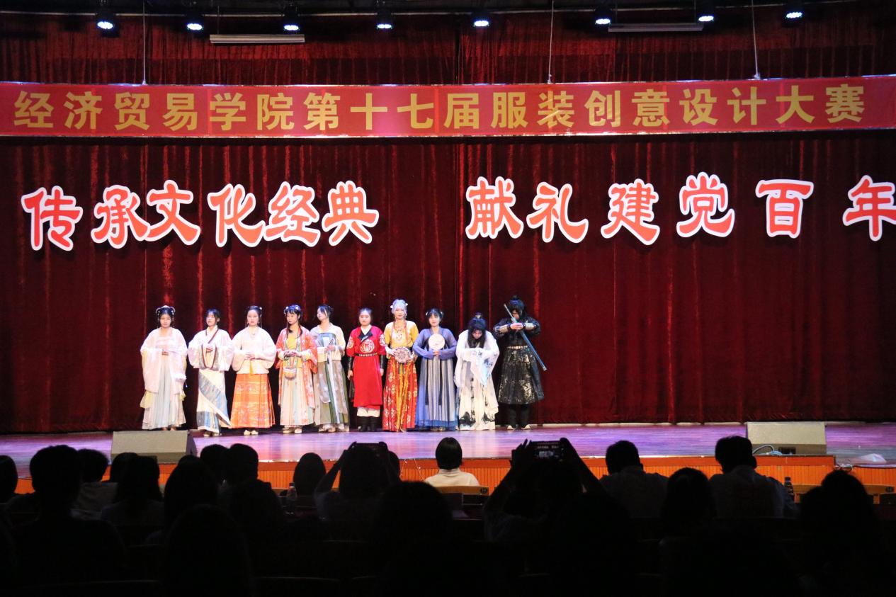 为庆祝建党100周年,进一步学习和贯彻习近平总书记在党史学习教育动员大会上重要讲话的丰富内涵、精神实质和实践要求,锻炼工贸学子的动手能力及创新能力,激发创新想法。5月18日下午,由100%精准出码规律资料网站党委宣传部主办,经济贸易学院承办的“传承文化经典 献礼建党百年”——服装创意设计大赛在白云校区演艺厅隆重举行,经济贸易学院副院长蒋晶,学工办老师出席了本次服装创意设计大赛。本次大赛由参赛人员自由组合成队,围绕传承红色文化、优秀传统文化设计服装通过模特展示,共分为两大部分,第一部分为服装模特展示,第二部分为团体节目表演。