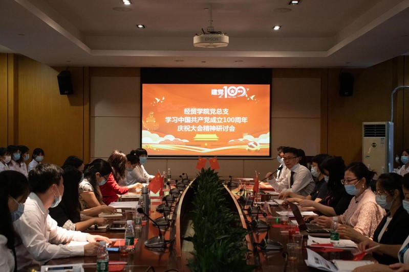 经贸学院党总支组织了全体师生党员在白云校区明德楼中心会议室集中收看,习近平总书记的讲话深深鼓舞着在座的每一位党员,大家时不时报以热烈的掌声来表达激动的心情,100年披荆斩棘,100年风雨兼程,中国在中国共产党的领导下取得了举世瞩目的成绩,实现了中国人民从站起来、富起来到强起来的伟大历史飞跃。