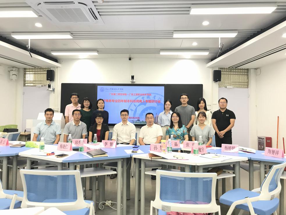 为保证该项目实验班各项工作顺利开展,8月26日下午,广东第二师范学院管理学院院长兼党总支书记夏青一行5人莅临我校,共同开展专题研讨会,受到学校经济贸易学院全体领导班子热情接待。会议在天河校区西区举行,由经贸学院办公室主任邓彩云主持。