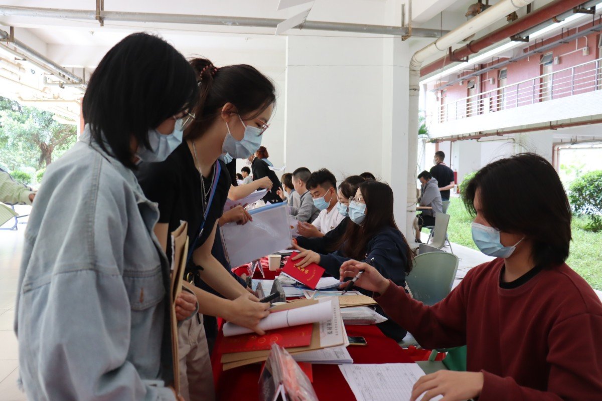 志愿者指引新生办入学手续