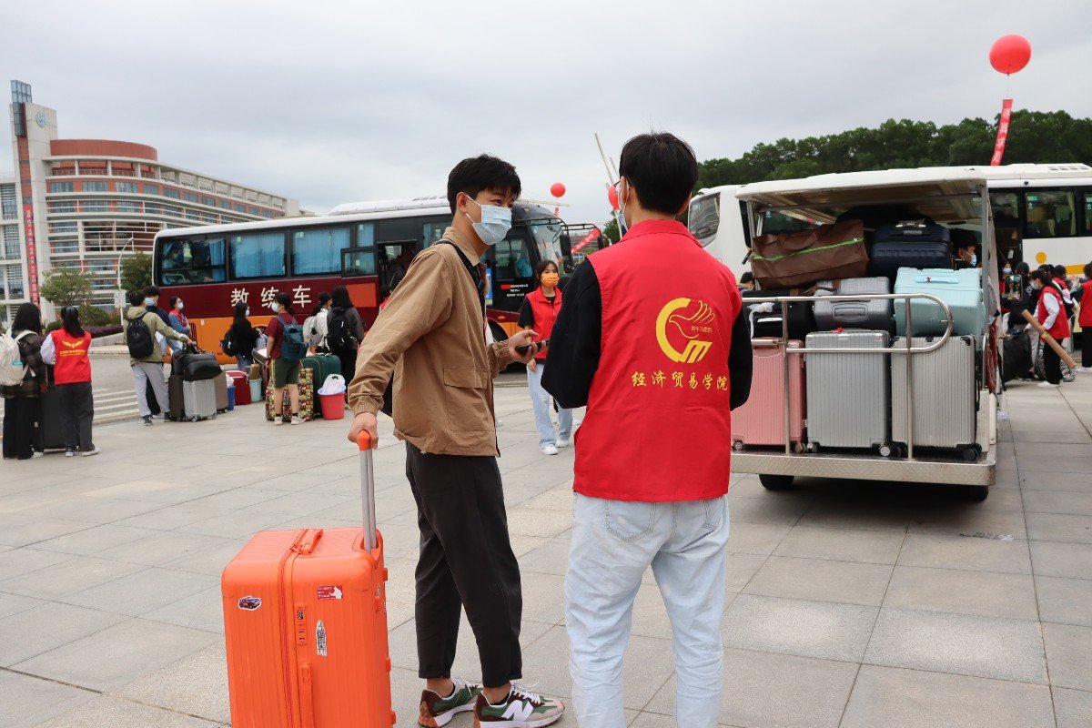 上午七点,经济贸易学院迎新生志愿者和老师已经在子衿广场集合准备迎新,对即将到来的新生们充满期待。部分志愿者前往新和地铁站进行迎新工作。志愿者用微笑迎接每一位新生,帮新生提行李,安排地铁站的新生上校车去到宿舍楼下。