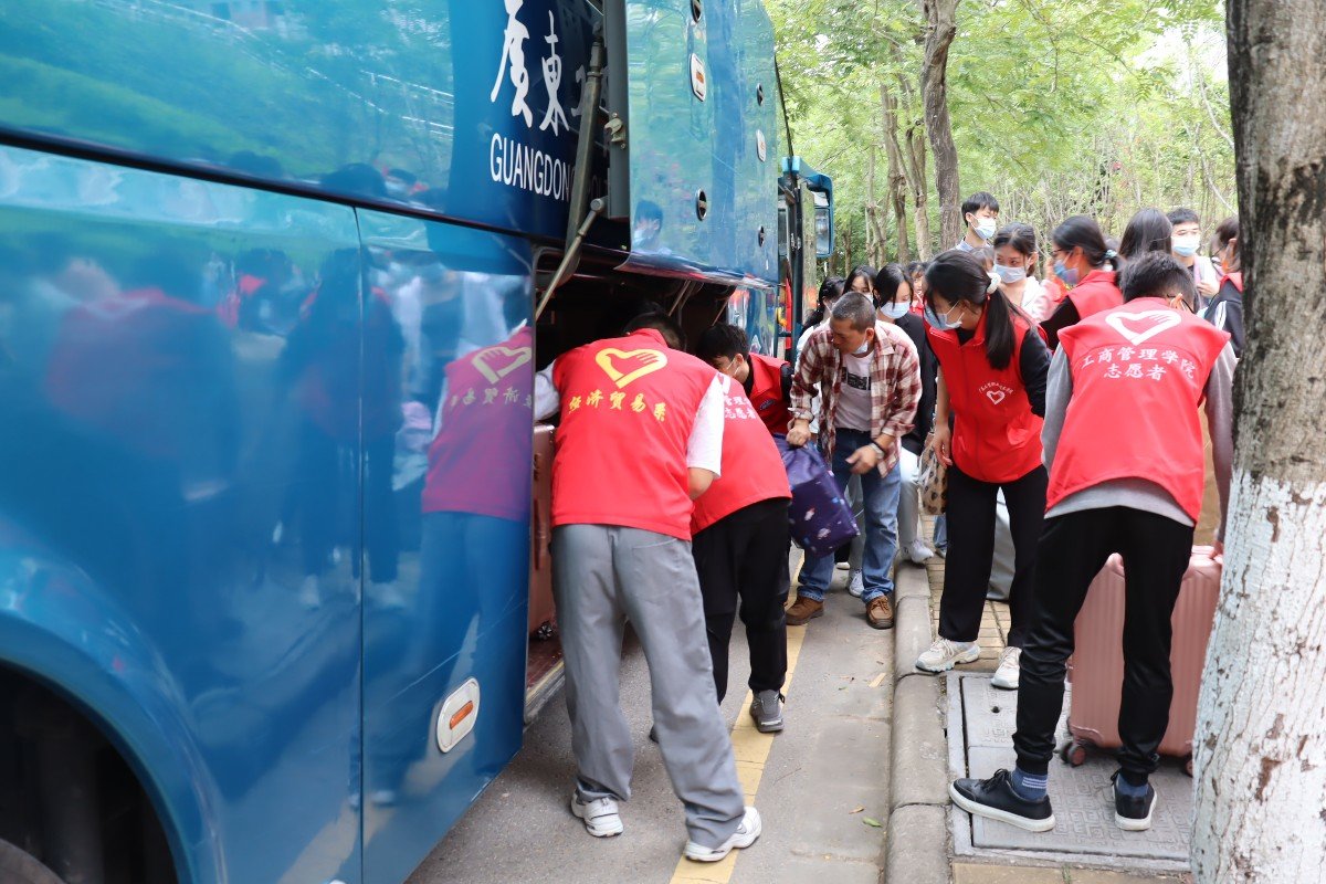 志愿者帮新生提行李上车