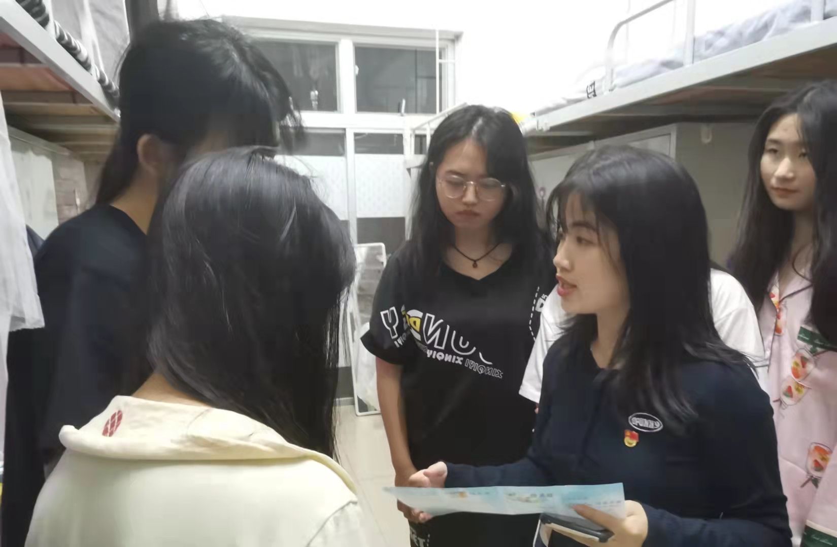 学史力行实干争先,服务新生见行见效。为推动党史学习教育同解决实际问题相结合、与解决新生实际需求相结合,推动“我为群众办实事”实践活动走深走实,厚植党员服务意识。10月19日下午,党支部书记陈晓艳组织全体党员进新生宿舍、引思想,立足学习、生活等方面,为新生“量身定做”系列活动,致力于解决新生最直接、最关心、最现实的问题。