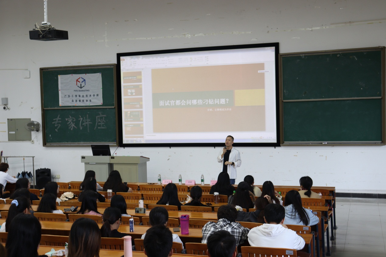 在白云校区2-104,何志毛围绕“面试官会问那些刁钻问题?”,跟同学们分享了营销岗位群看重的专业技能和专业知识,巧妙地告诉了同学们企业行业的用人需求,并传授了面试回答的技巧,何志毛幽默风趣,娓娓道来,同学们听的津津有味,讲座在同学们的鼓掌声中圆满结束。