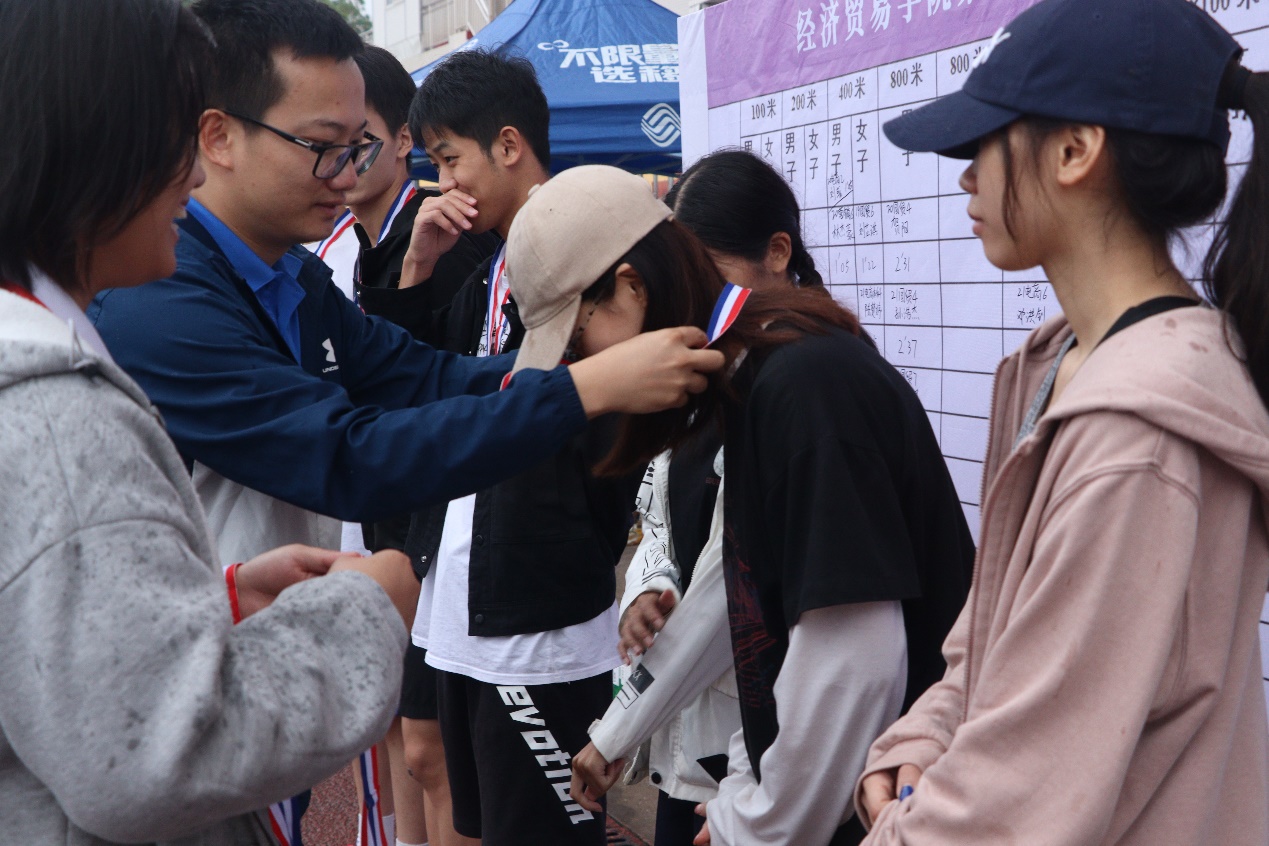 下午5点时分,天又下起了朦朦细雨,比赛宣布结束。风雨中的比赛精神比赛的得奖更加来之不易!赛场上每一位运动员都是披荆斩棘的英雄,他们认真专注,展示了经贸学子积极向上、不惧困难的精神风采。大雨唱着歌,清风跳着舞,都在为运动员们表示喝彩、祝贺!