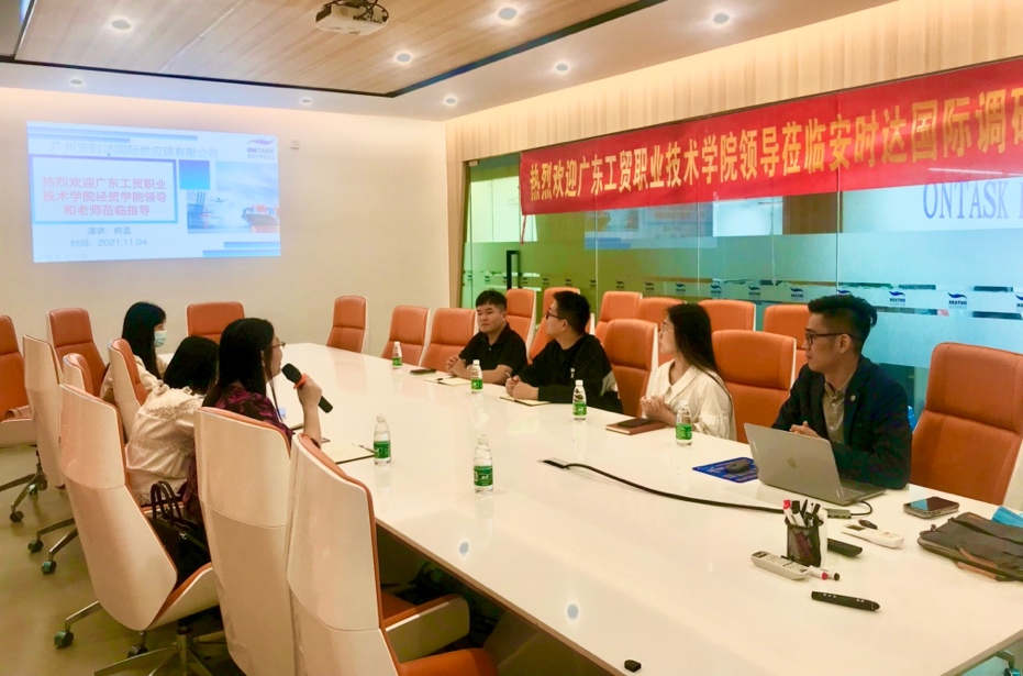 为深度开展校企合作、推动产教融合、落实专业对接产业的目标,进一步提高我校国际经济与贸易专业学生的实践能力,2021年11月4日,在经贸学院副院长、专业带头人蒋晶带领下,商贸系主任张莉老师、国贸专业曹倩老师、游秋杨老师共同参加广州安时达国际供应链有限公司的调研。