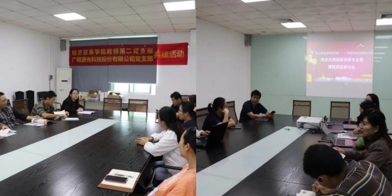 广明源光股份科技有限公司是一家专注于光科技应用的研发以及生产的大型制造型企业,产品销往全球一百多个国家和地区,获“广东省名牌产品”、“广东省著名商标”,广东省“企业技术中心”、“国家高新技术企业”,设有全国博士后管委会核批的“博士后科研工作站”。广明源光股份科技有限公司党支部成立于2014年,2021年6月被中共鹤山市委评为优秀党支部,通过设立党员示范岗等方式,亮身份、亮服务,积极发挥党员模范带头作用。活动期间,校企党支部开展了共建座谈交流及课程思政研讨。