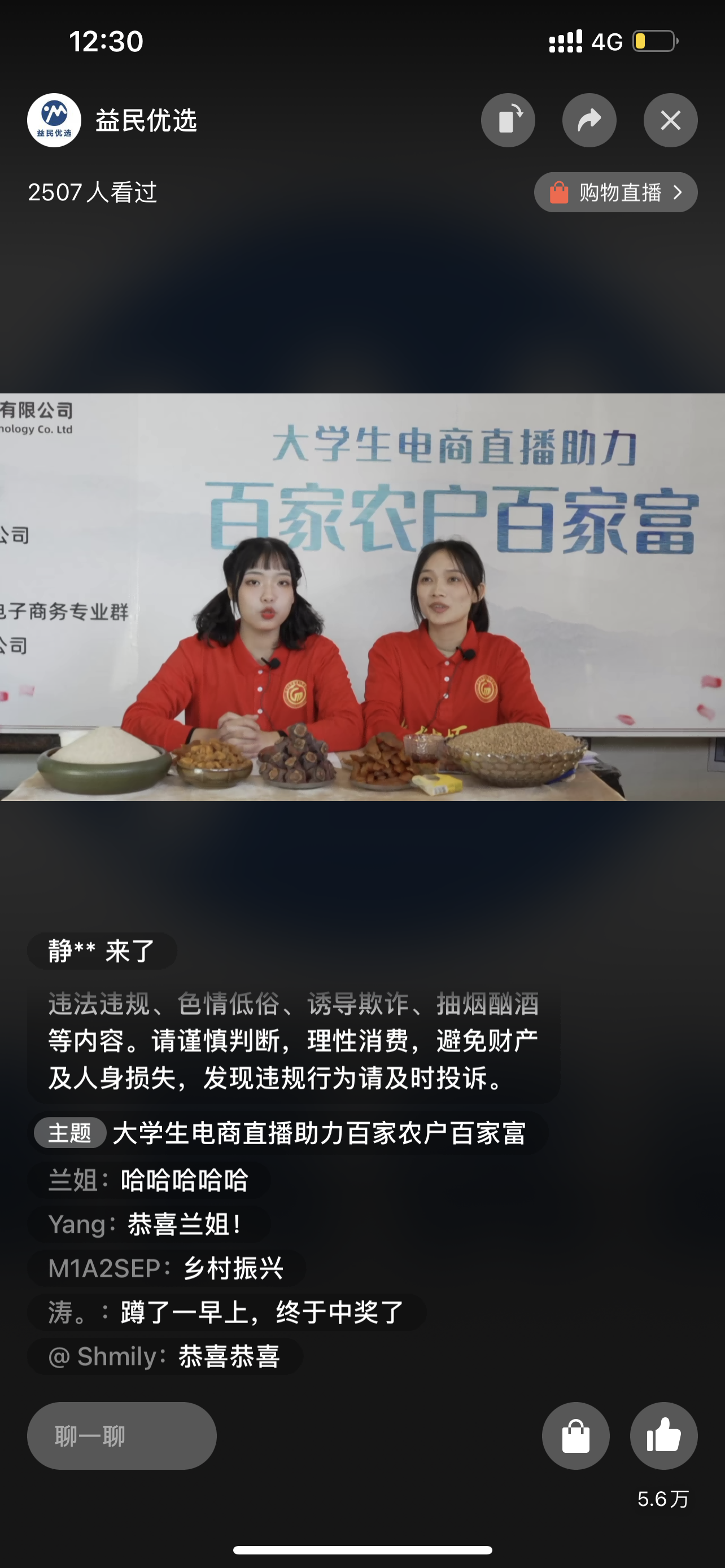 “百家农户百家富”,一场大学生电商直播助农活动,为学校参与乡村振兴战略增添了一股清新的力量。大学生参与其中也是学校思想政治教育工作模式的创新,把思政教育放在田间地头,放在乡村振兴助农直播间,让乡间思政课有了更多的亲和力和针对性,让学生在服务中学习,在学习中成长,在成长中建设。