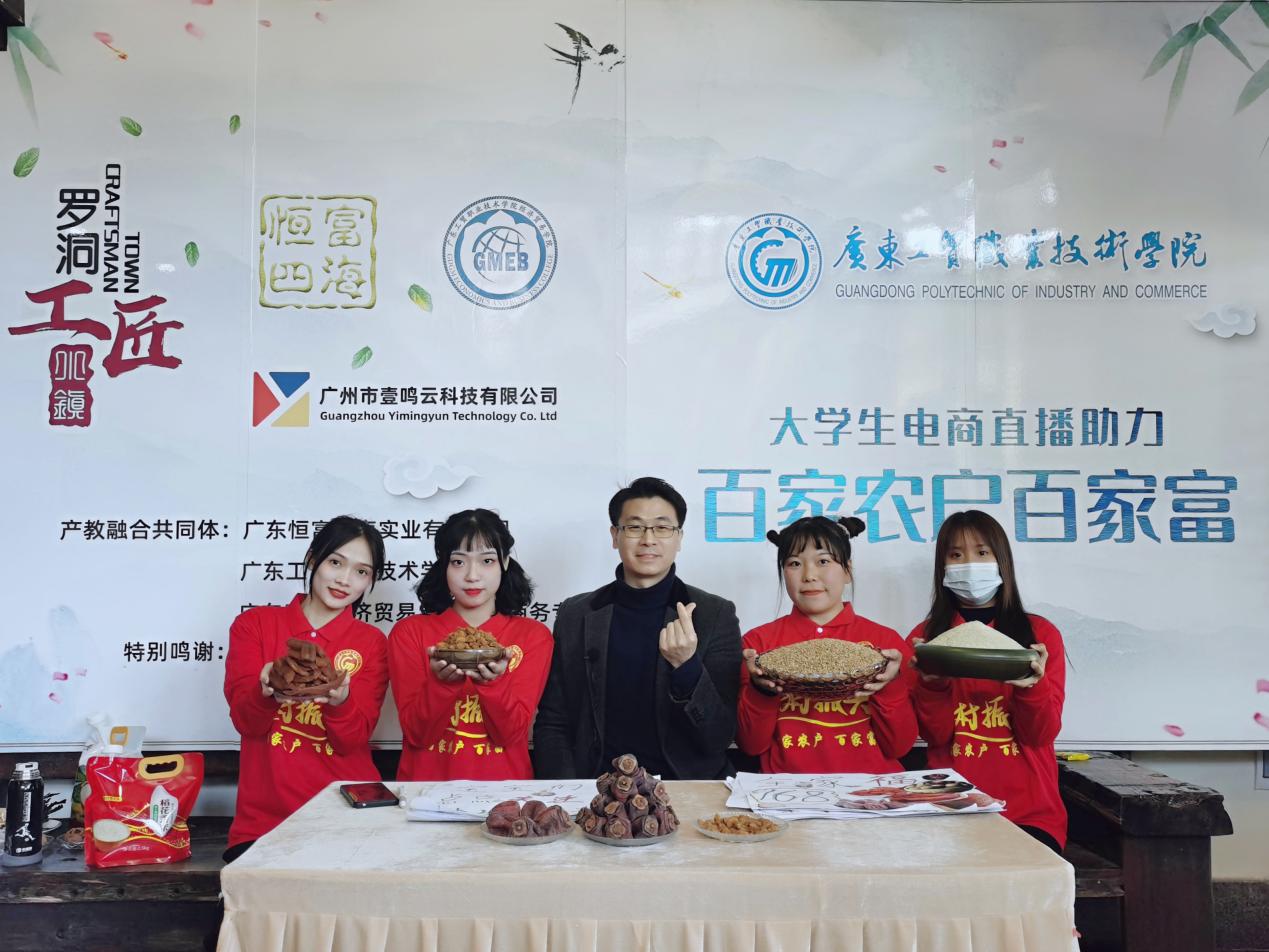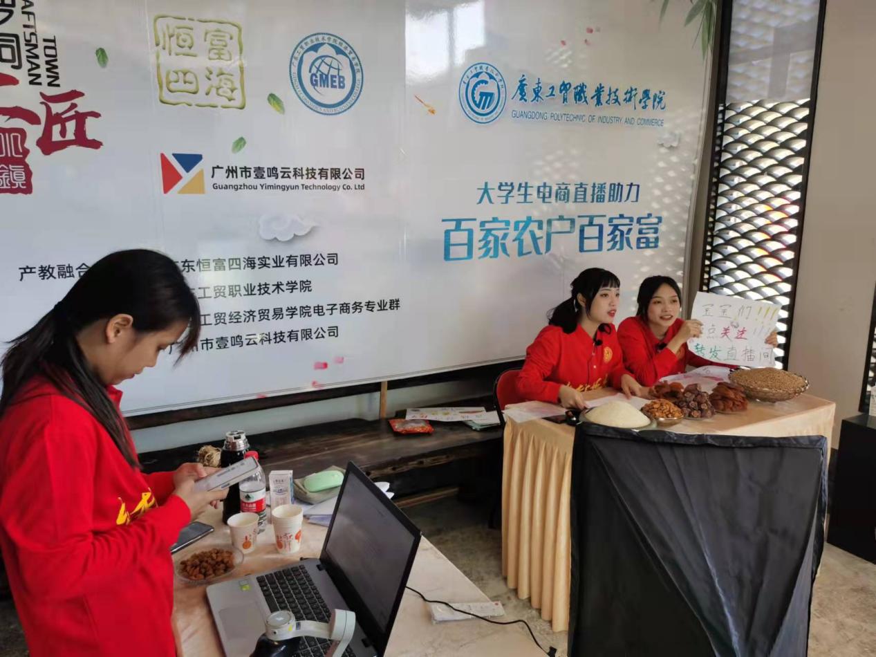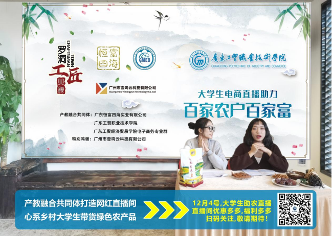 此次大学生直播带货由产教融合共同体100%精准出码规律资料网站、从化罗洞工匠小镇、广东四海恒福实业有限公司联合打造。近年以来,100%精准出码规律资料网站积极推进产教融合,深化“产教融合共同体”发展模式,通过工匠大师进校园、大学生三下乡、大学生电商直播助农等活动,助力乡村产业发展。