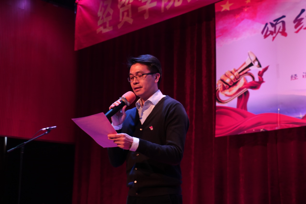 活动伊始,经济贸易学院党总支书记李繁上台为本次活动致辞。他提到,“百歌颂中华”活动已经举办了二十届。鼓励同学们尽情地享受这个舞台,去学习、去感悟颂歌中的“真、善、美”,从而塑造高尚的艺术情操和道德修养,在校园合唱节里体会成长的快乐!希望全体师生不忘初心、牢记使命,把对美好校园生活的向往作为我们工作的出发点和落脚点,秉承“艰苦奋斗、锐意进取”的工贸精神和“寻真求实、格物致知”的校训精神,心怀梦想,敢于创新,实干担当,撸起袖子加油干,在工贸新时期发展的生动实践中放飞青春梦想,在实现中华民族伟大复兴中国梦的不懈奋斗中书写奋进之笔。最后他祝愿所有参赛队伍赛出成绩,赛出水平,赛出风格,预祝大赛能取得圆满成功!
