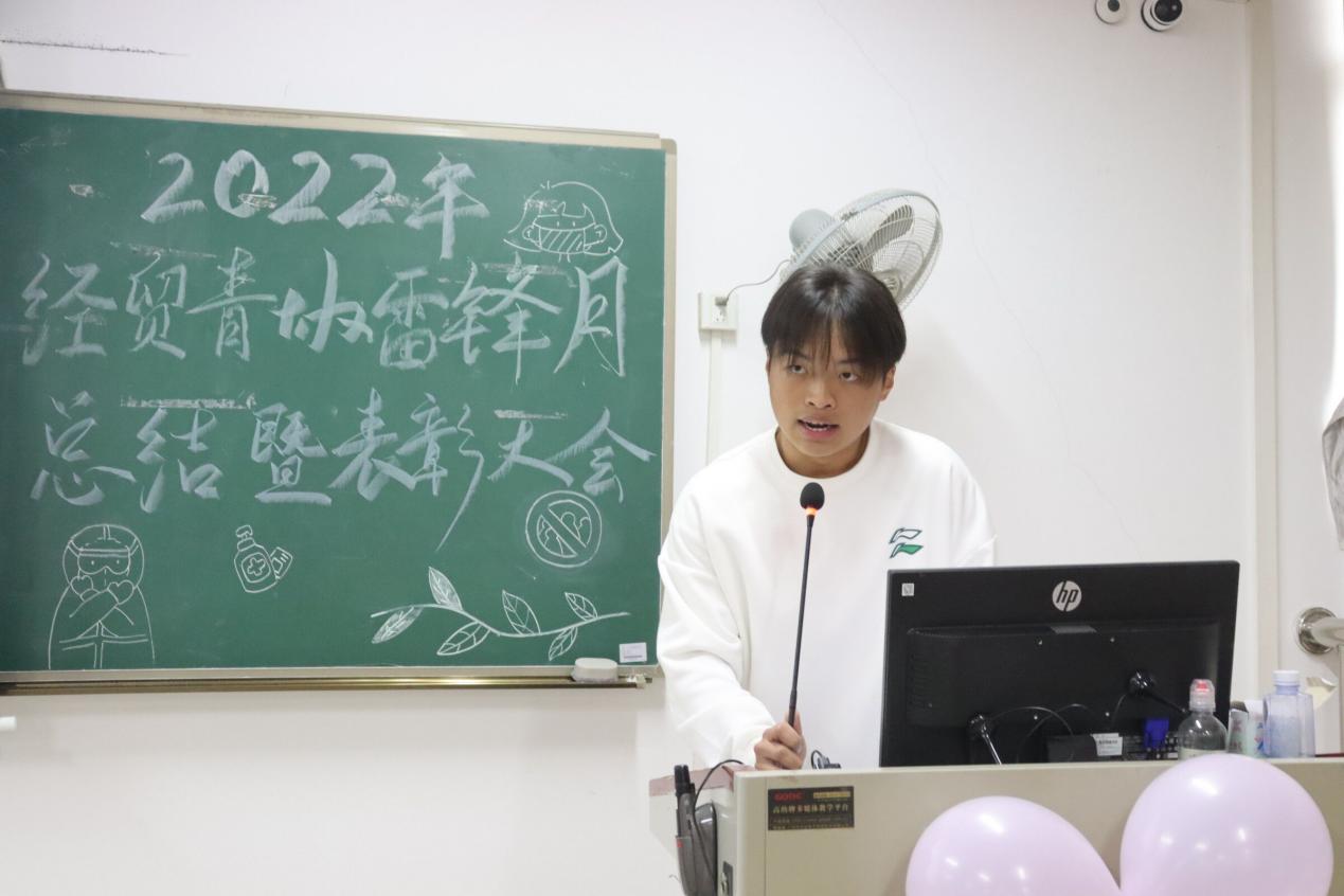继视频回顾后,经贸青协秘书长许海东对雷锋月活动作总结,表示对活动结果的肯定和对志愿者的赞美,并希望各位不沉溺过去,而是从过去发现不足,汲取经验,不断学习。
