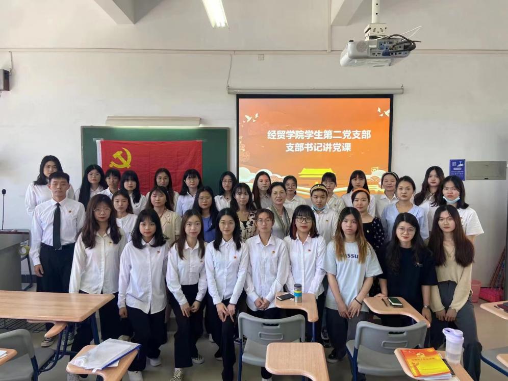 5月17日,经济贸易学院学生第二党支部支部书记陈晓艳在1-604为大家上了一堂“学党史,知党情,做合格党员”的专题党课,全体党员参与了学习。