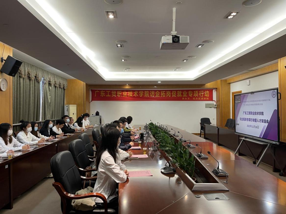 为学习宣传贯彻党的二十大精神,落实2023届全国普通高校毕业生就业创业工作网络视频会议精神及广东省毕业生就业工作的总体部署,深入开展学校访企拓岗促就业专项行动,切实做好经济贸易学院2023届毕业生就业工作,11月26日下午,经济贸易学院在白云校区明德楼中心会议室通过线上线下相结合的方式,举办了访企拓岗专项行动暨人才双选会。学校党委委员、副校长唐毓秋,经贸学院党总支书记李繁,经贸学院党总支副书记、院长邱秀芳,党总支副书记龚云,副院长蒋晶,联邦快递、乐有家控股集团公司、广州大洋教育科技股份有限公司、广州市升谱达音响科技有限公司、广东聚晨晋力通信设备科技有限公司等企业代表、经贸学院全体辅导员,以及学院500多名毕业生参加了本次双选会。此次会议由李繁主持。