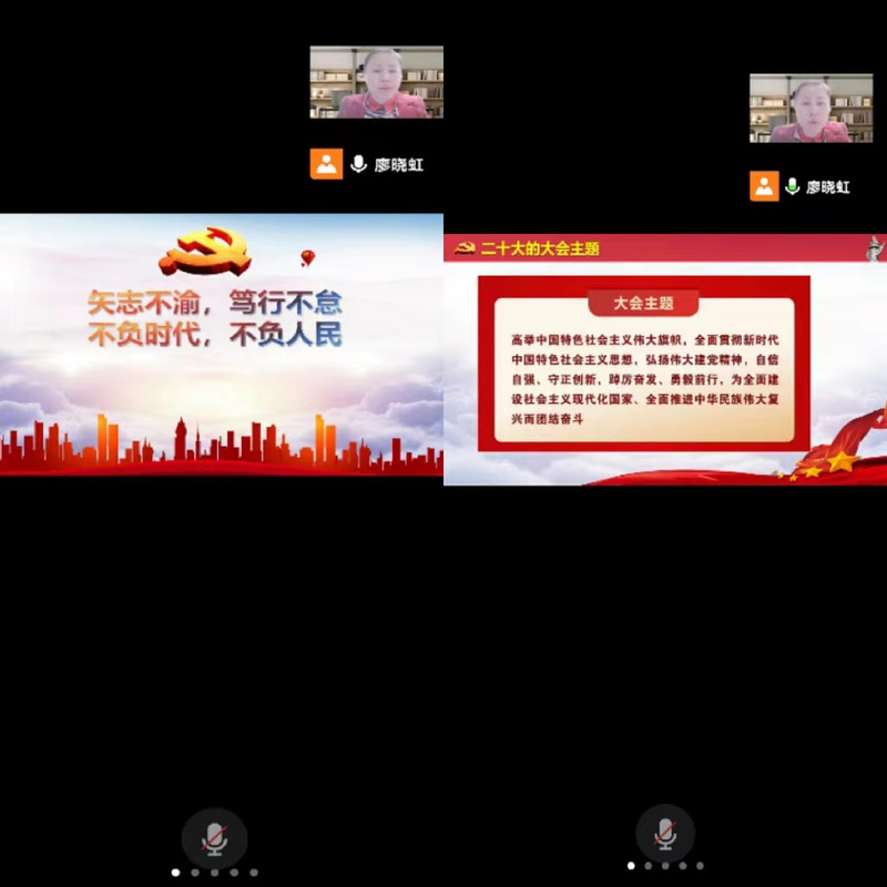 2022年12月8日晚上8点,经贸学院教师第一党支部书记廖晓虹根据学校党委的部署安排,通过腾讯会议的形式向教师第一党支部全体党员和电商专业全体教师开展党的二十大精神宣讲的主题党课。