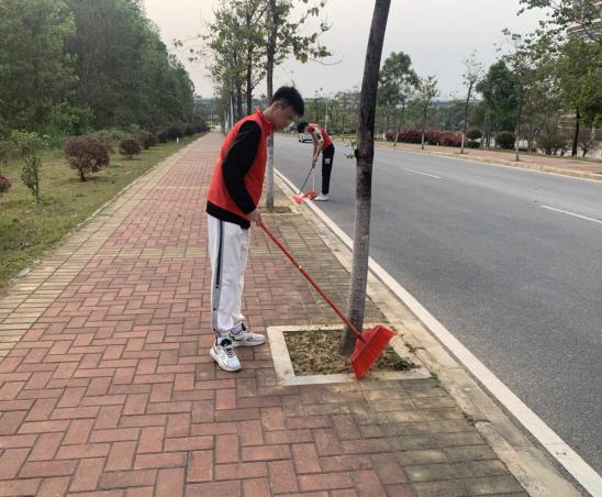 同学们打扫校道照片