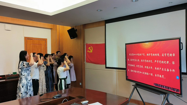 会议最后,所有参会人员在支部蒋晶书记的带领下重温入党誓词。