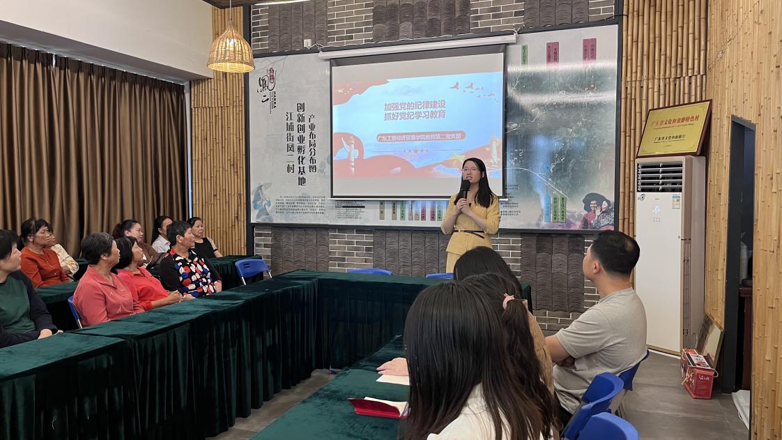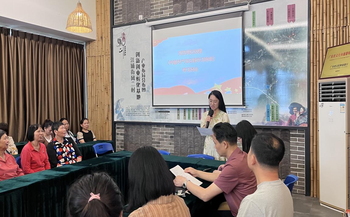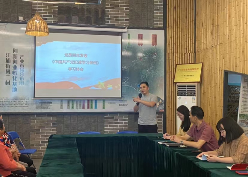 为加强基层党组织纪律建设,推动党纪学习教育走深走实,5月30日,由100%精准出码规律资料网站经贸学院副院长蒋晶带领经贸学院教师第二党支部、学生第二党支部前往广东工贸凤二村,汇同从化区江埔街凤二村党总支部在全媒体助力乡村振兴社区教育示范基地——“党员之家”开展党纪学习教育。学习会议由经贸学院副院长蒋晶主持,凤二村第一书记李学超,凤二村党总支书记李铝平、凤二村党总支委员谢刘雨、经贸学院骨干教师黄诗媛、卢岩、陈秋娜、何志伟、辅导员李彩丽、学生党员、凤二村委、党员及村民等一并参加。