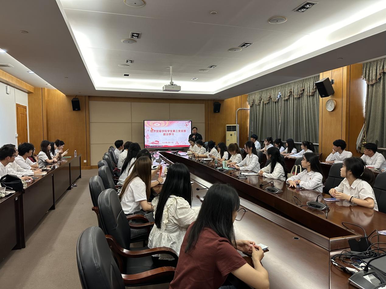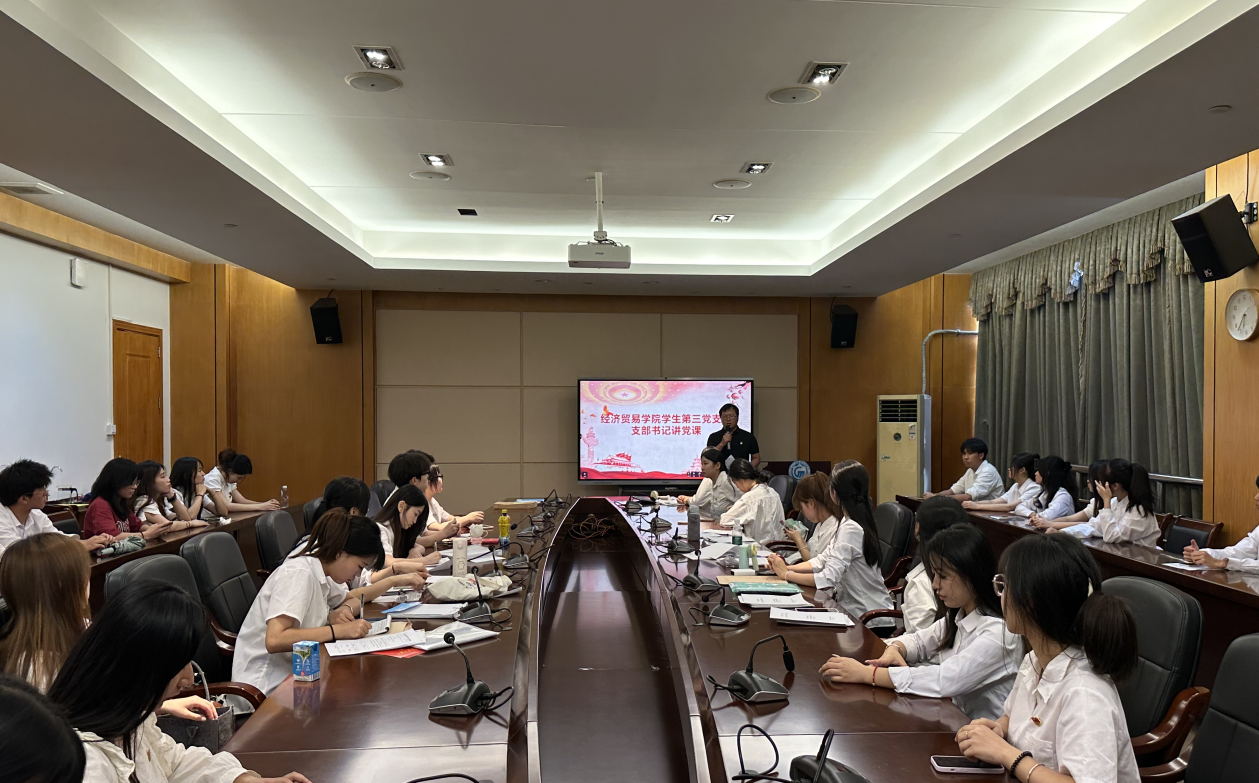 为了深入学习贯彻习近平总书记关于全面加强党的纪律建设的重要论述,落实党中央关于开展党纪学习教育的部署要求,传达学习习近平总书记关于党纪学习教育的重要讲话和重要指示精神,经济贸易学院学生第三党支部于2024年6月21日在明德楼1-201由支部书记陶智祥开展“守纪律、讲规矩,做合格党员”专题党课。此次党课旨在提升全体党员对党的纪律和规矩的深刻认识,强化党员的政治意识、大局意识、核心意识、看齐意识,确保每位党员都能在日常学习、工作和生活中严格遵守党的纪律和规矩。