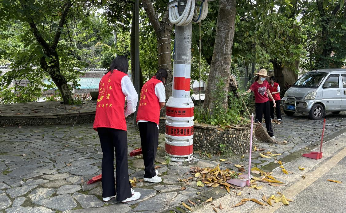 座谈结束后,双方一起开展了“懂农业、爱农村、爱农民”、“知农爱农”情怀教育和价值引领的志愿活动,经贸学院第二党支部学生党员协同凤二村村委、党员们在凤二村内开展了乡村环境卫生整治工作。大家对凤二村街道辖区内的杂草枯叶、道路垃圾进行了重点卫生清理,确保了村内周边环境整洁干净,为凤二村人居环境整治贡献出自己的一份力量。