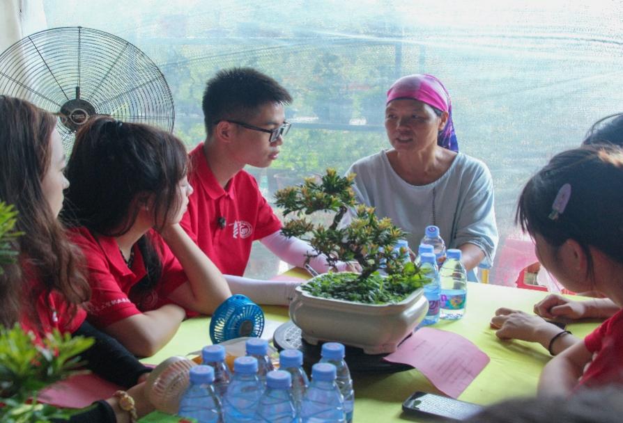 本次活动在白云区钟落潭镇京彩家庭农场开展,京彩家庭农场主营产品为罗汉松盆景。罗汉松具有观赏价值和多种功效,寓意为健康长寿、幸福安康、富贵吉祥。电商兴农突击队指导老师莫雯嘉和队员们在直播开展前与农户进行交流,一方面了解农户的经营理念、产品特点以及农户运用电商的收获和现实困难等,另一方面队员们分享电商运营技能和经验。除此之外,队员们与农户还围绕农村电商新模式、新媒体培训、校企村合作等进行了交流。“罗汉松进入千家万户是我的梦想,电商为我的梦想插上了翅膀”,农户表示,运用电商以来,产品销量大大提高,新媒体宣传也让更多的人认识罗汉松,爱上罗汉松。但是作为初学者,自己在电商平台运营、产品宣传等方面依然会碰到难题,今后会不断学习,提高技能。