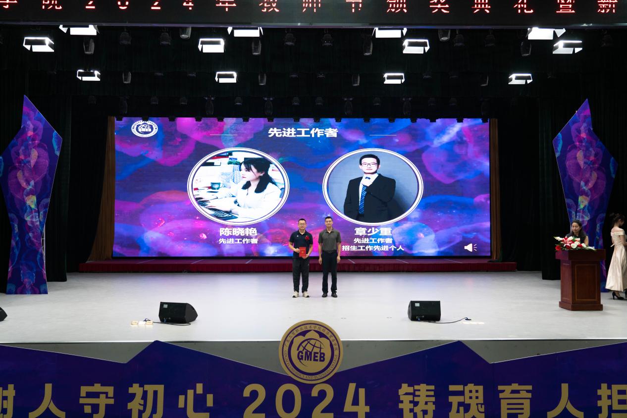 在过去的一年里,经贸学院上下锐意进取,秉持着“大力弘扬教育家精神,加快建设教育强国”的理想与抱负,为培养更多高素质技能人才而不断努力。2023-2024学年,经贸学院这个集体收获了许多荣誉。典礼先后颁发了“学校先进集体”“招生、就业工作先进集体”“先进基层党组织”等集体奖项,以表彰在学校各项工作中表现突出的团队;接着是个人奖项,对在管理、教学、科研、竞赛等方面取得显著成绩的教师进行了表彰。获奖教师们纷纷上台领奖,他们的脸上洋溢着自豪和喜悦,台下掌声雷动,气氛达到了高潮。这些奖项不仅是对教师们辛勤付出的肯定,更是对他们在教育事业中作出的杰出贡献的认可。